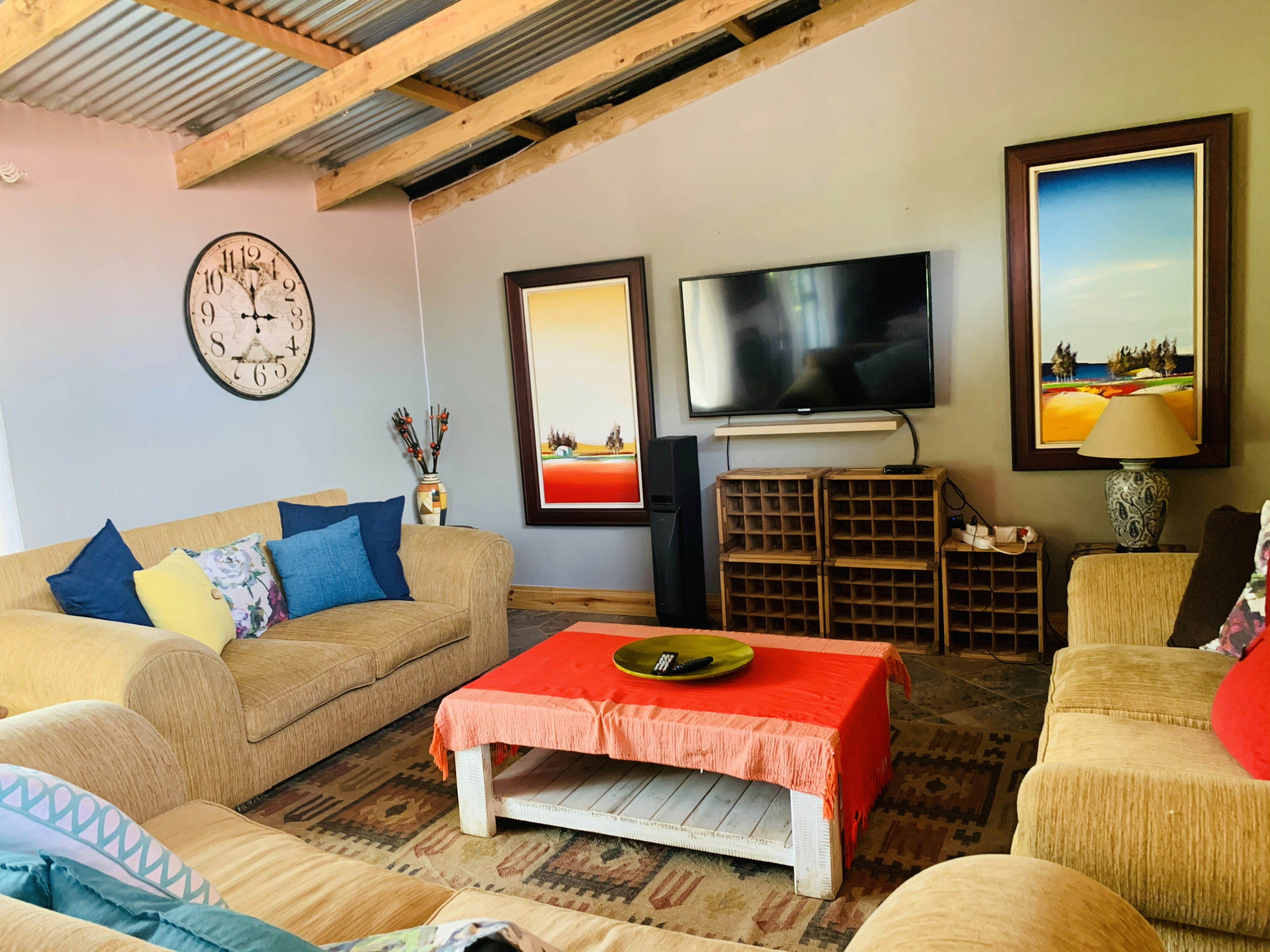 Die kombuis is toegerus met 'n yskas, gasstoof, elektriese oond, ketel, elektriese braaipan en mikrogolfoond. Daar is 'n TV met DStv, 'n alarm, en strale buite. Gratis WiFi is beskikbaar. Die huis het ook 'n groot, toegeboude patio met 'n etenstafel en TV. Daar is 'n groot tuin en 'n buitebraai. Die eiendom het ook 'n omskakelaar tydens kragonderbrekings en het ook boorgatwater.