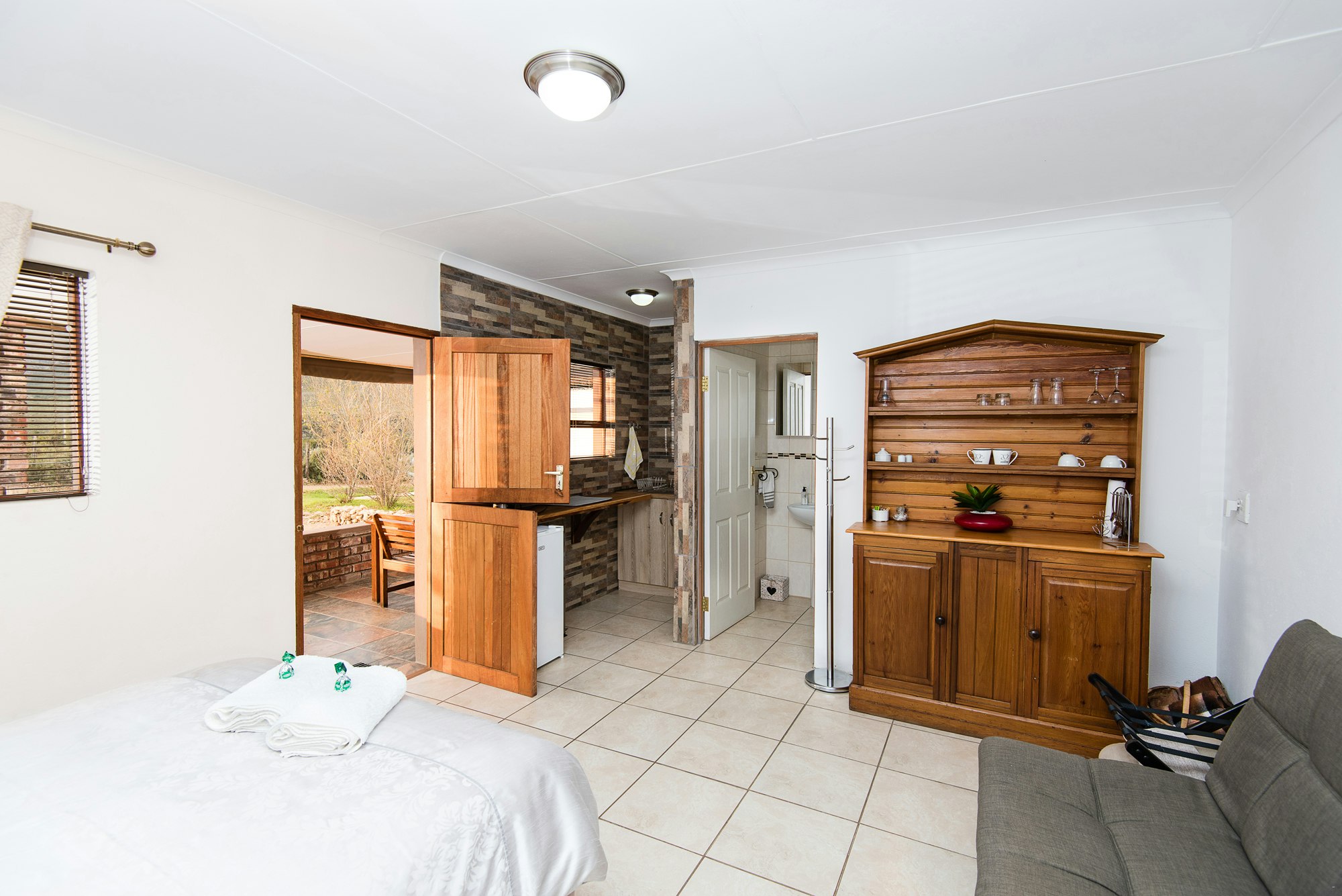 This cottage comprises an open-plan bedroom furnished with a double bed for 2 adults. The unit has 1 bathroom that is fitted with a shower, toilet, and basin. Adjacent to the bed is a kitchenette area equipped with a bar fridge, microwave, kettle, and sink. The unit has a private patio with a built-in braai area for guests to use, as well as a stove. Breakfast can be arranged at an extra cost, per person.