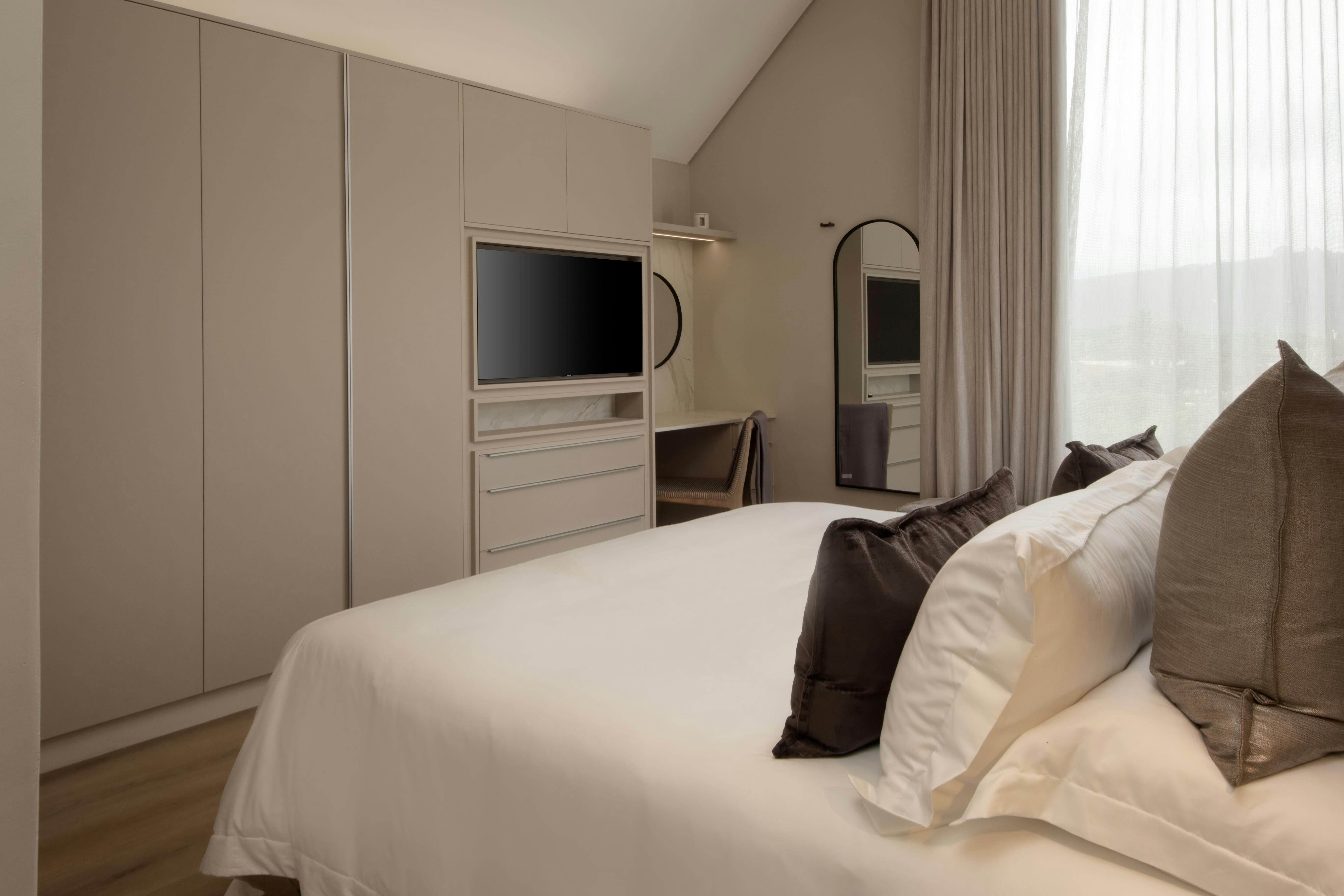 Verblyf sluit 'n reeks suites en kamers in, elk ontwerp met premium afwerkings. Gaste kan kies uit opsies met see-uitsigte of uitsigte oor die omliggende landskap.
