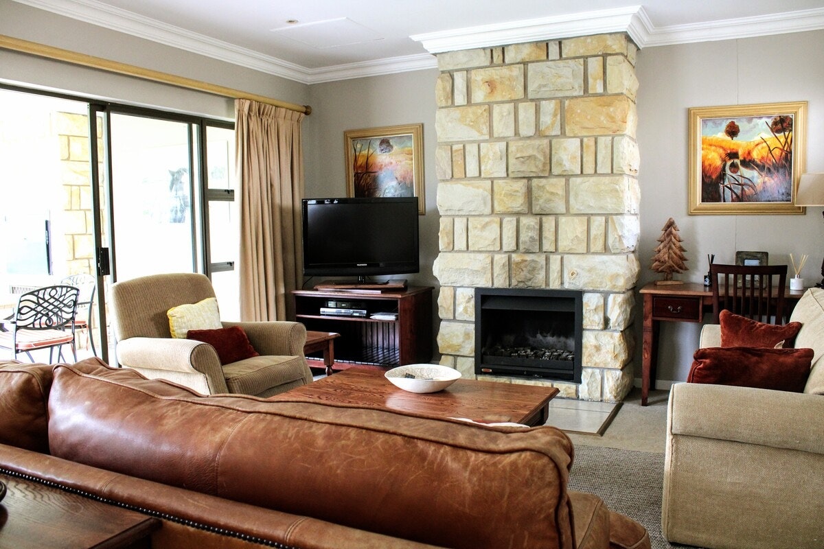 Die oopplan-leefarea sluit 'n eetkamertafel, 'n sitkamer met 'n TV met DStv Premium in. Daar is ook 'n gaskaggel. Die kombuis is toegerus met 'n wasmasjien, stoof, oond, yskas, mikrogolfoond, broodrooster en ketel. Die leefarea maak oop na 'n patio met braaigeriewe en 'n eetkamertafel.