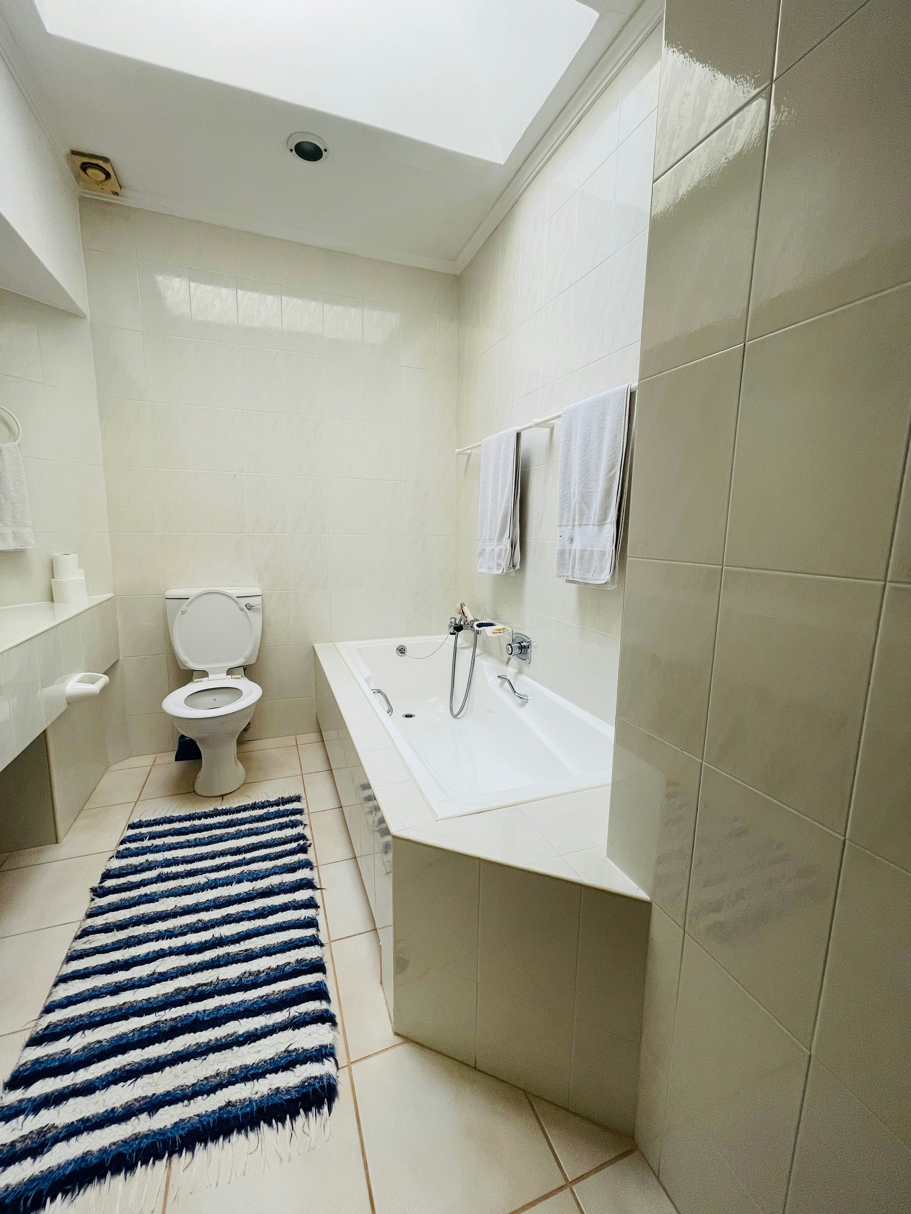 Die huis bied slaapplek vir tot 8 gaste en bestaan uit 4 slaapkamers met lugversorging en 'n en suite-badkamer. Die eerste slaapkamer is gemeubileer met 'n koningingrootte-bed, die tweede met 'n dubbelbed, die derde met 2 enkelbeddens en die vierde met 'n dubbelbed. Elke badkamer is toegerus met beide 'n bad en 'n stort. Linne en badhanddoeke word voorsien.