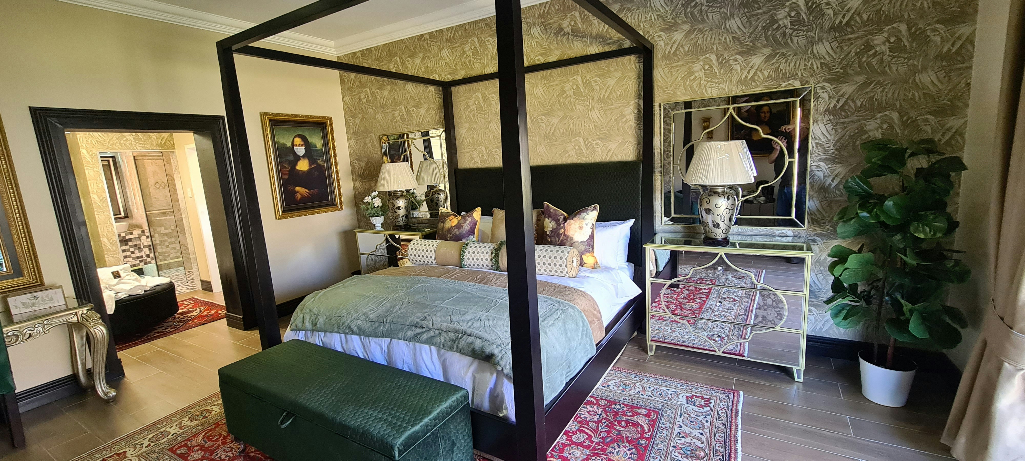 Die unieke gastehuis beskik oor 5 luukse kamers en 'n Executive-kamer, elk met 'n en suite-badkamer. Die luukse kamers het elkeen of 'n koninggrootte-bed of 'n koningingrootte-bed en 'n en suite-badkamer met 'n bad of stort. Die Executive-kamer het 'n koningingrootte-bed en 'n en suite-badkamer met 'n stort, toilet en wasbak.