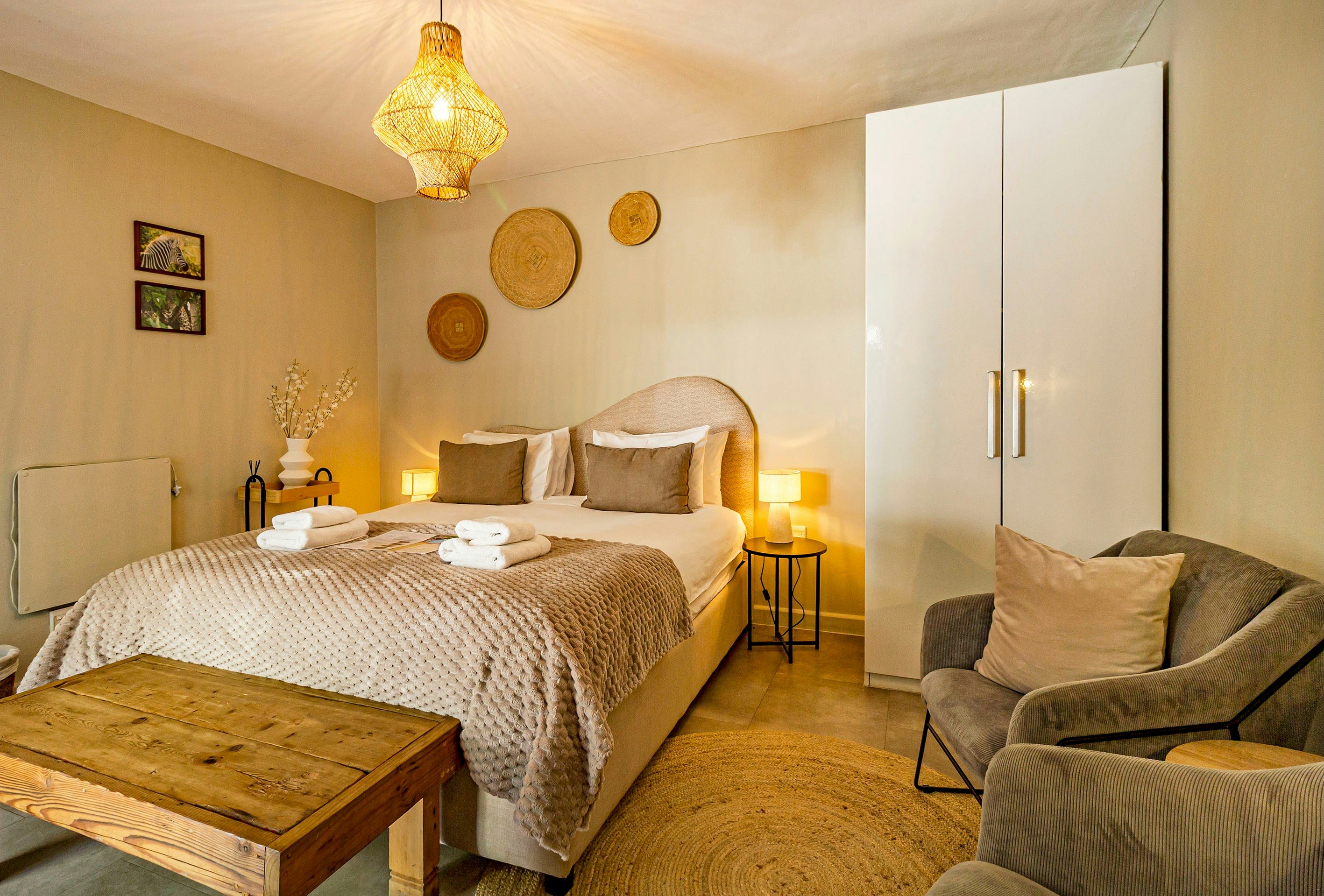Set on a quiet country estate at the foot of the Helderberg mountain, Villa Helderberg offers a relaxed escape surrounded by a lush garden, poolside spaces, and mountain views. Recently renovated, the villa now features luxuriously upgraded rooms and cottages alongside a beautifully reimagined garden. Just minutes from award-winning wine estates, golf courses, and the beaches of False Bay, it’s an ideal base in the heart of the Cape Winelands. Located just 8 minutes from the white sands of Strand Beach, Villa Helderberg combines country calm with easy access to the city and coast.