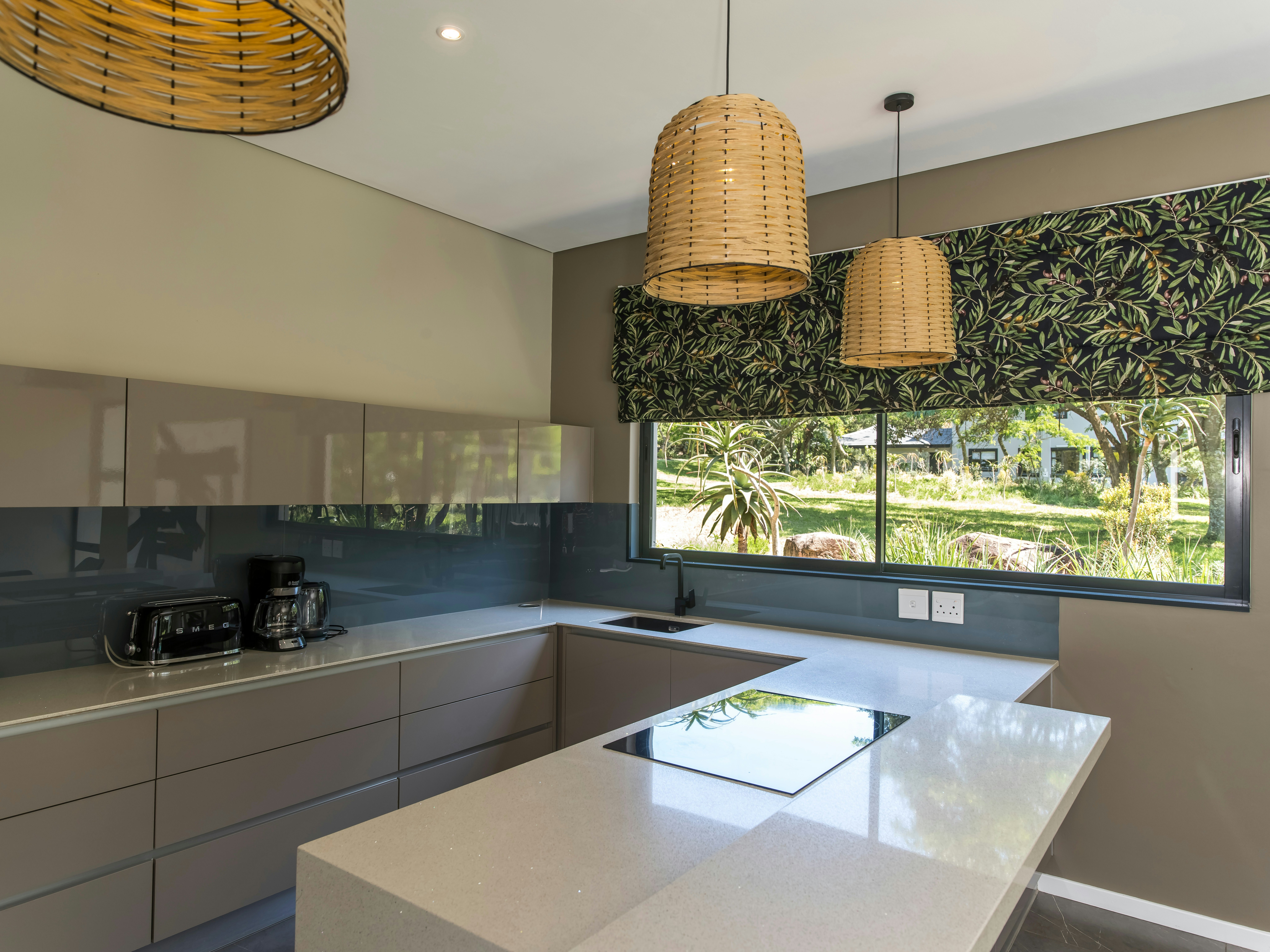 Die oopplan-leefarea beskik oor 'n kombuis wat volledig toegerus is met 'n stoof, oond, mikrogolfoond, yskas-vrieskas, eetgerei en breekware, asook 'n ontbyttoonbank met stoele. Vanuit die kombuis is 'n eetkamertafel met 8 sitplekke en 'n knus sitkamer met gemaklike sitplek en 'n platskerm-TV met 'n volledige verskeidenheid DStv-noodsaaklike kanale. Toegang tot gratis WiFi is beskikbaar. Versien vir 4 uur per dag, behalwe op Sondae en openbare vakansiedae.
