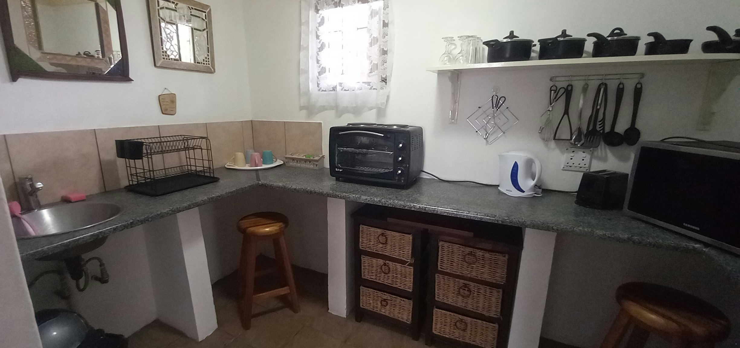 Guests are welcome to enjoy the swimming pool by the owners' house. There is also a farm dam in which guests can swim if they're not afraid of sharing the water with tilapia. Safe on-site parking is available. The farm dam has fish and guests can fish on a catch-and-release basis.