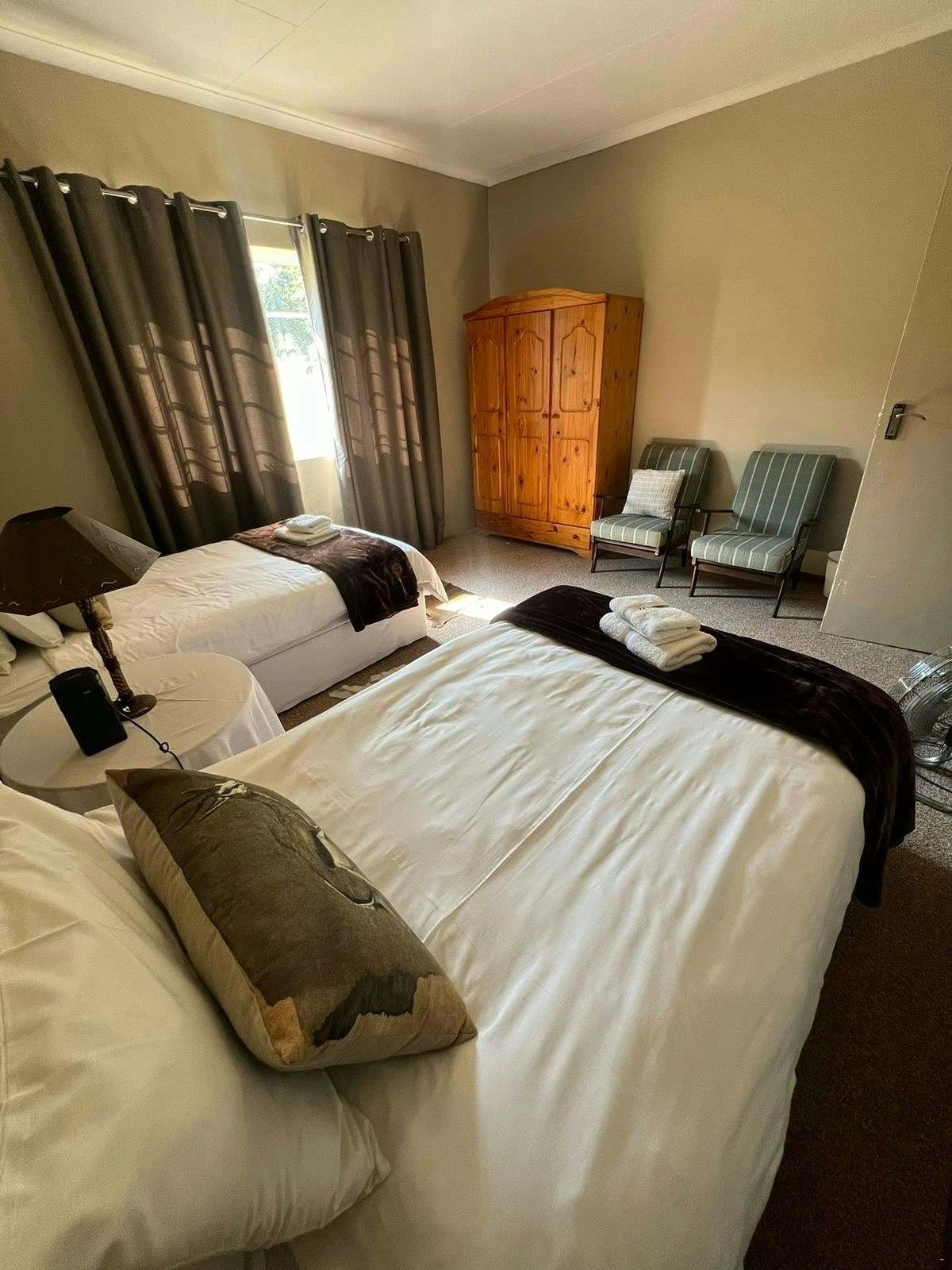 Die hoofhuis bied slaapplek vir 8 volwassenes en 1 kind in 4 slaapkamers. Die hoofslaapkamer het 'n koningingrootte-bed en 'n enkelbed en het 'n en suite-badkamer met 'n bad, stort en toilet. Die tweede slaapkamer het 'n koningingrootte-bed en 'n en suite-badkamer met 'n stort, toilet en wasbak. Die oorblywende 2 slaapkamers het elk 2 enkelbeddens en deel 'n badkamer met 'n stort, toilet en wasbak. Vars linne en badhanddoeke word voorsien.