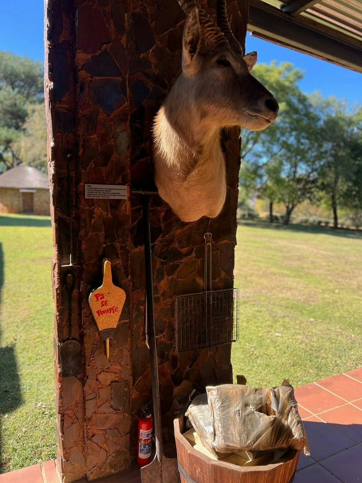 Die oordekte patio beskik oor 'n ingeboude braai, boma, kroegarea en buitesitplek. Gaste het toegang tot parkering op die perseel. Die plaas bied stapgeleenthede, 3 damme vir vang-en-vrylaat-visvang, en skilderagtige roetes wat per 4x4 na uitkykpunte en watervalle toeganklik is. Wild soos sebras, sabel, rooibok, koedoe en springbok kan op die plaas gesien word.