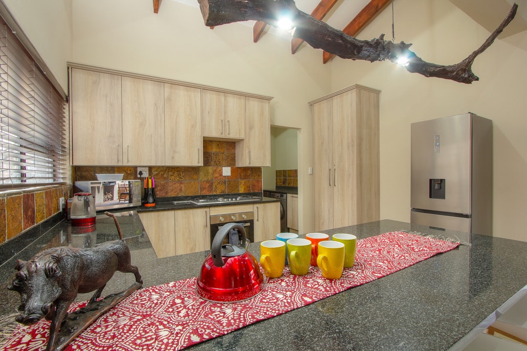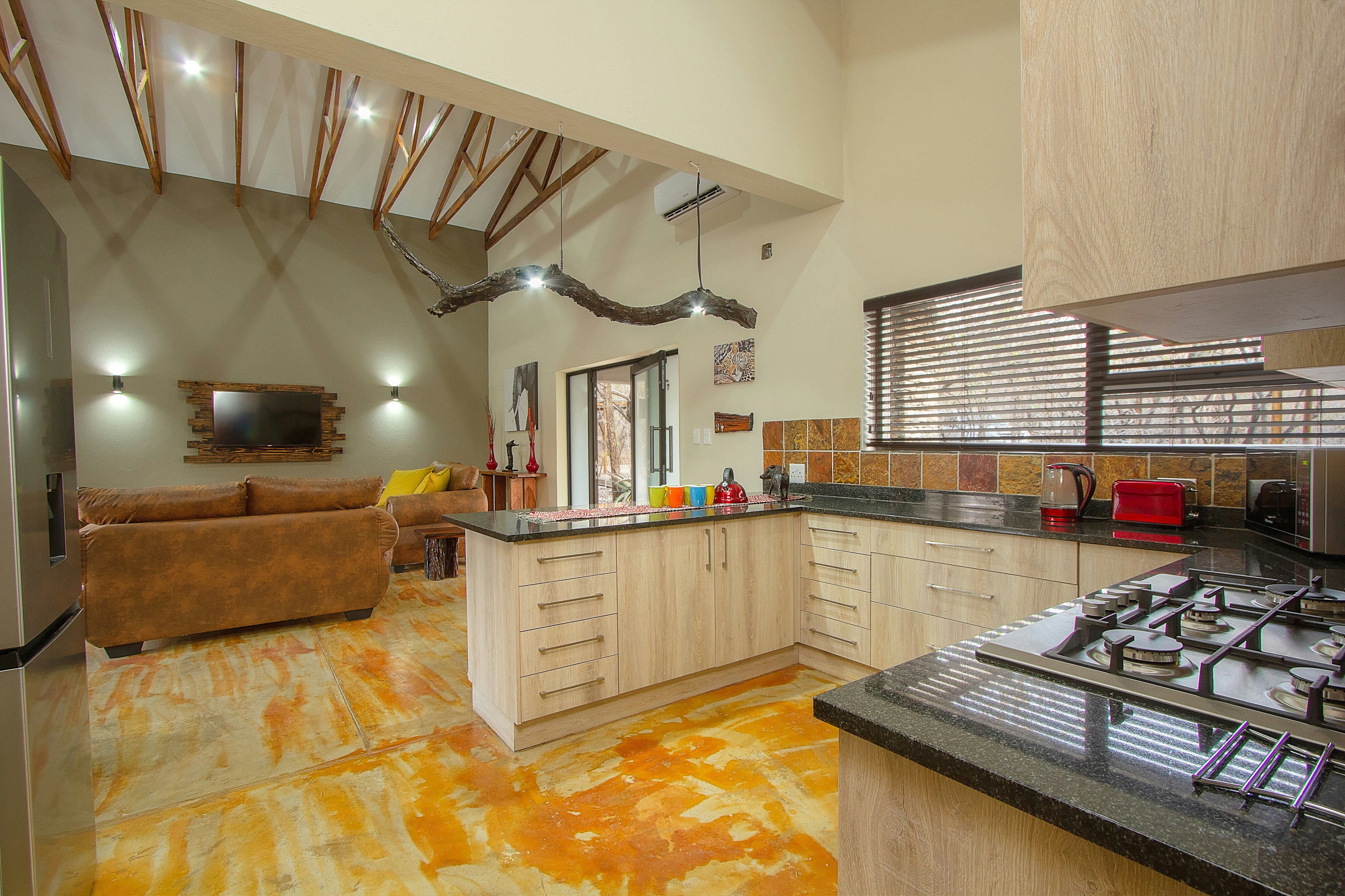 Die kombuis is met 'n vyfplaatgasstoof, 'n elektriese oond, 2 dubbeldeuryskas-vrieskaste, 'n waskamer met 'n wasmasjien en skottelgoedwasser toegerus. Daar is ook 'n sitarea in die kombuis. Die sitarea het lugversorging en gemaklike rusbanke, 'n slim-TV en gratis WiFi. Gaste moet asb. hul eie besonderhede gebruik om flieks en reekse te kyk.
