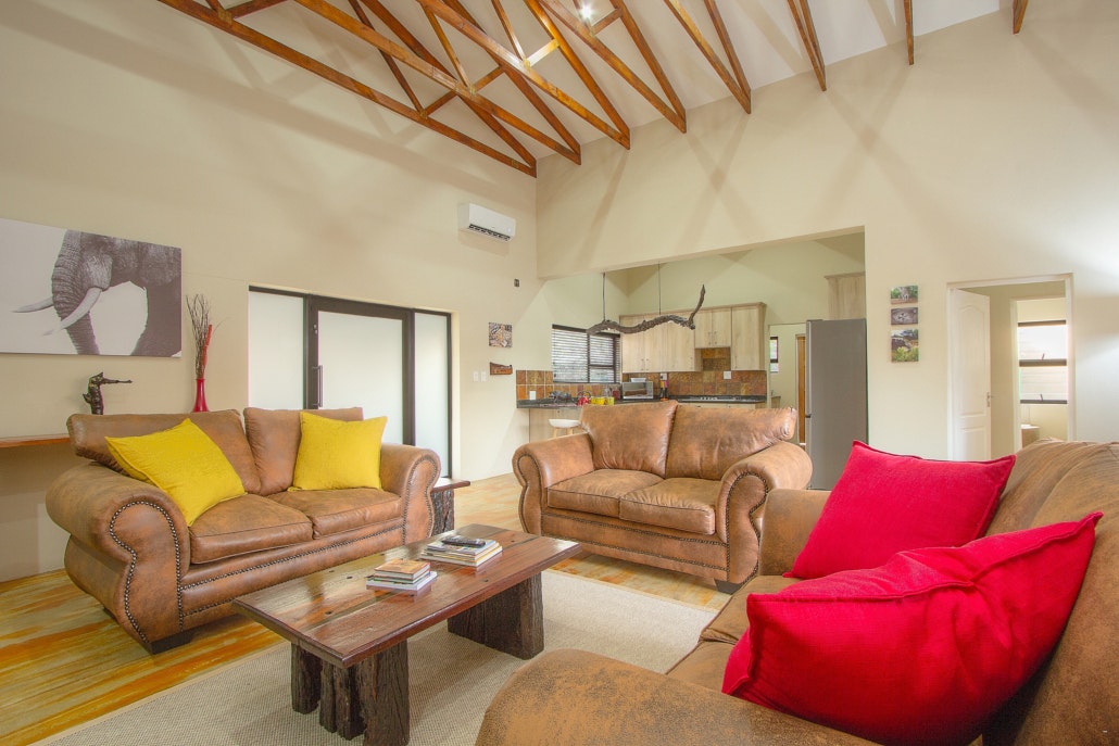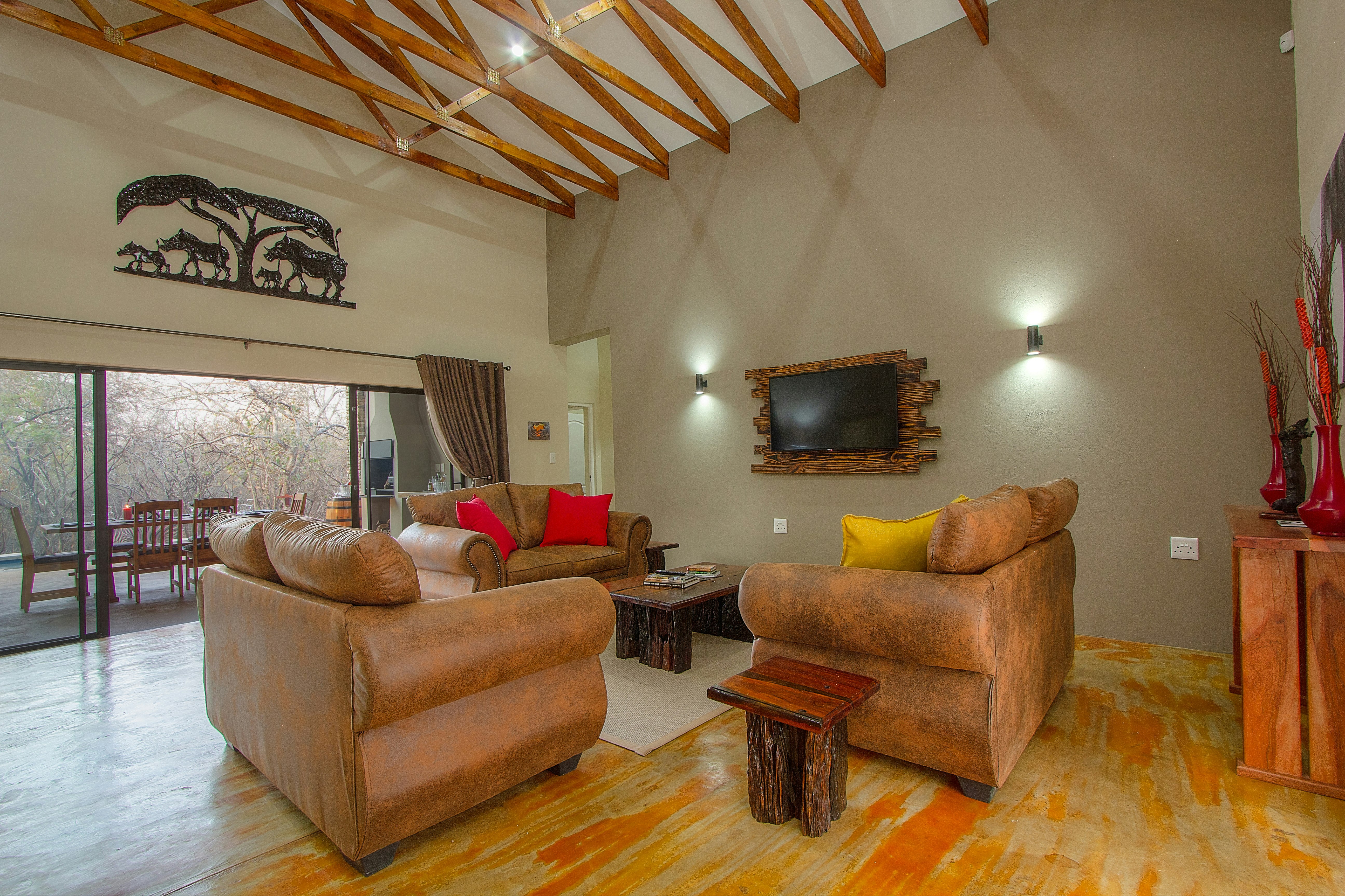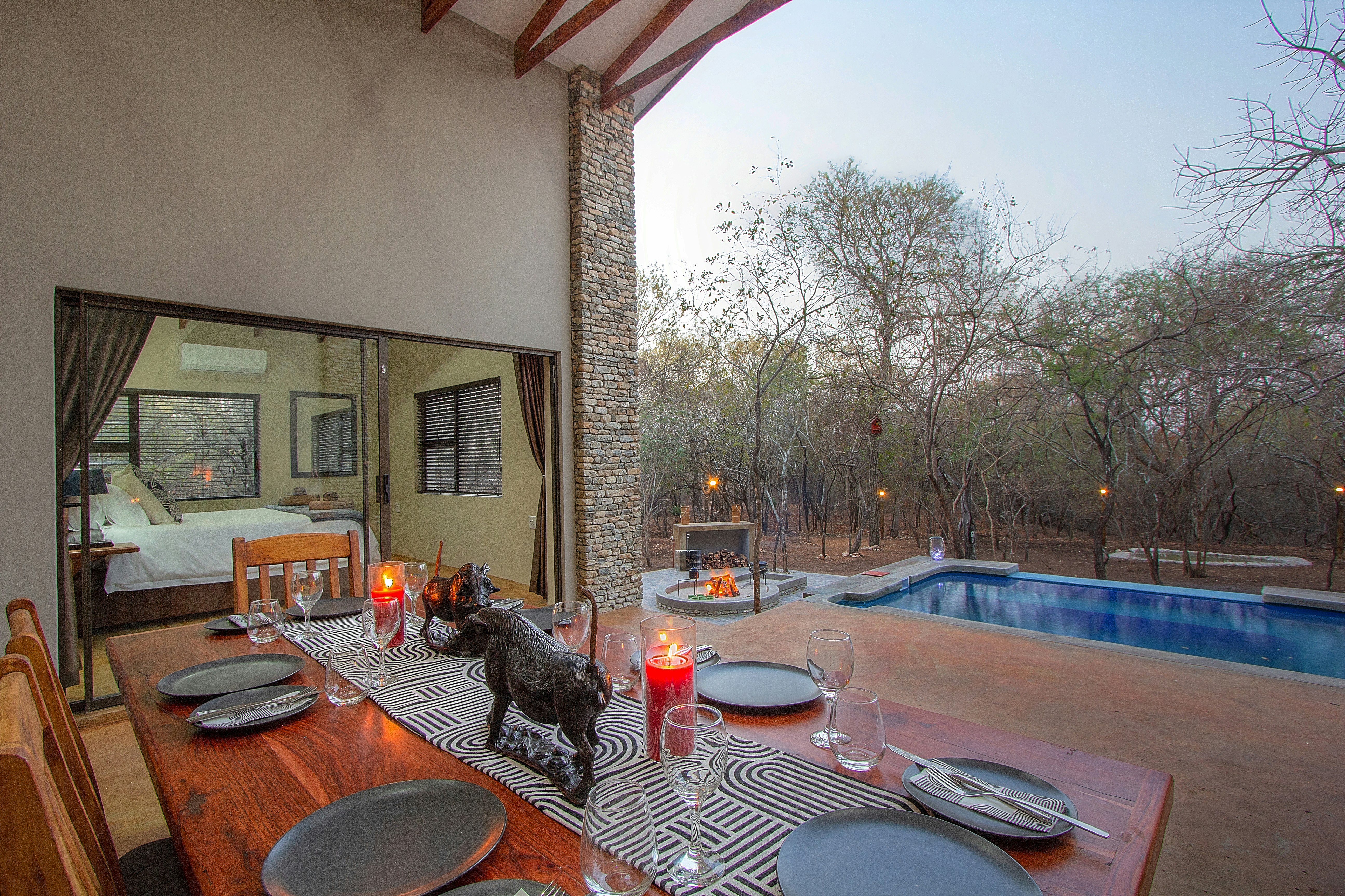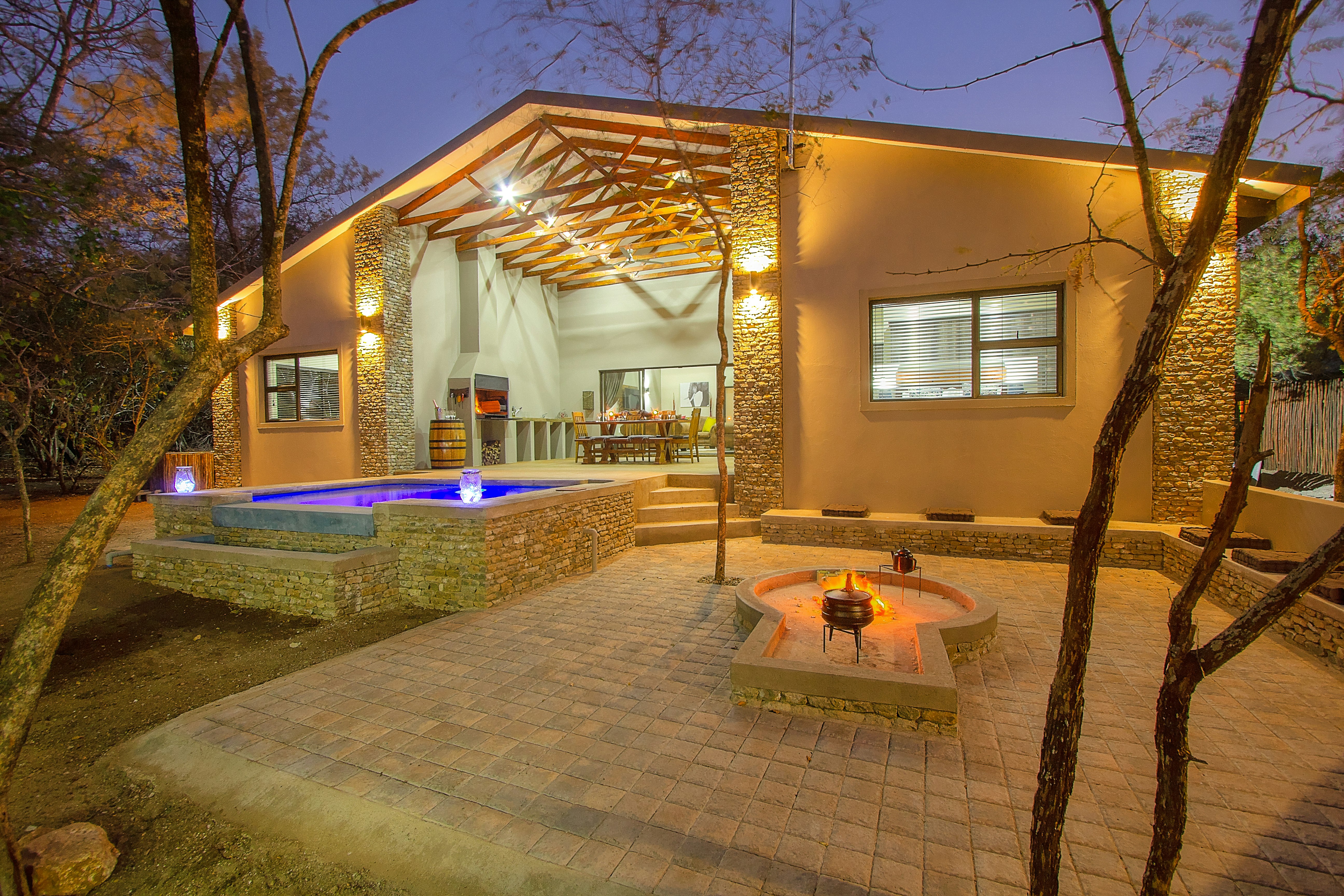 Die hoofslaapkamer en die sitarea het skuifdeure wat na 'n onderdakstoep met 'n groot etenstafel, 'n ingeboude braai, plonspoel, 'n boma met braai-area en vuurput lei. Die stoeparea is gelig en het pragtige uitsigte oor die diere wat verbystap.