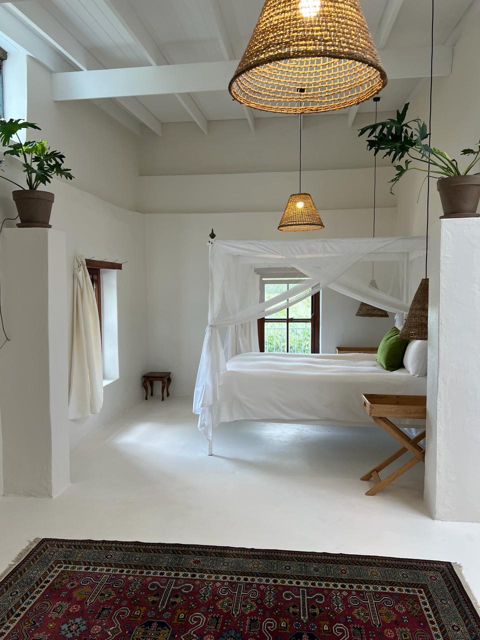 Die oopplan-sitarea het gemaklike linnesitplek en lei na 'n lieflike, stylvolle kombuis wat met 'n gasstoof, oond, yskas, wasmasjien, skottelgoedwasser en ketel toegerus is. Die leefarea lei na 'n groot stoep met 'n uitsig oor die dam en die Waboomrivier.
