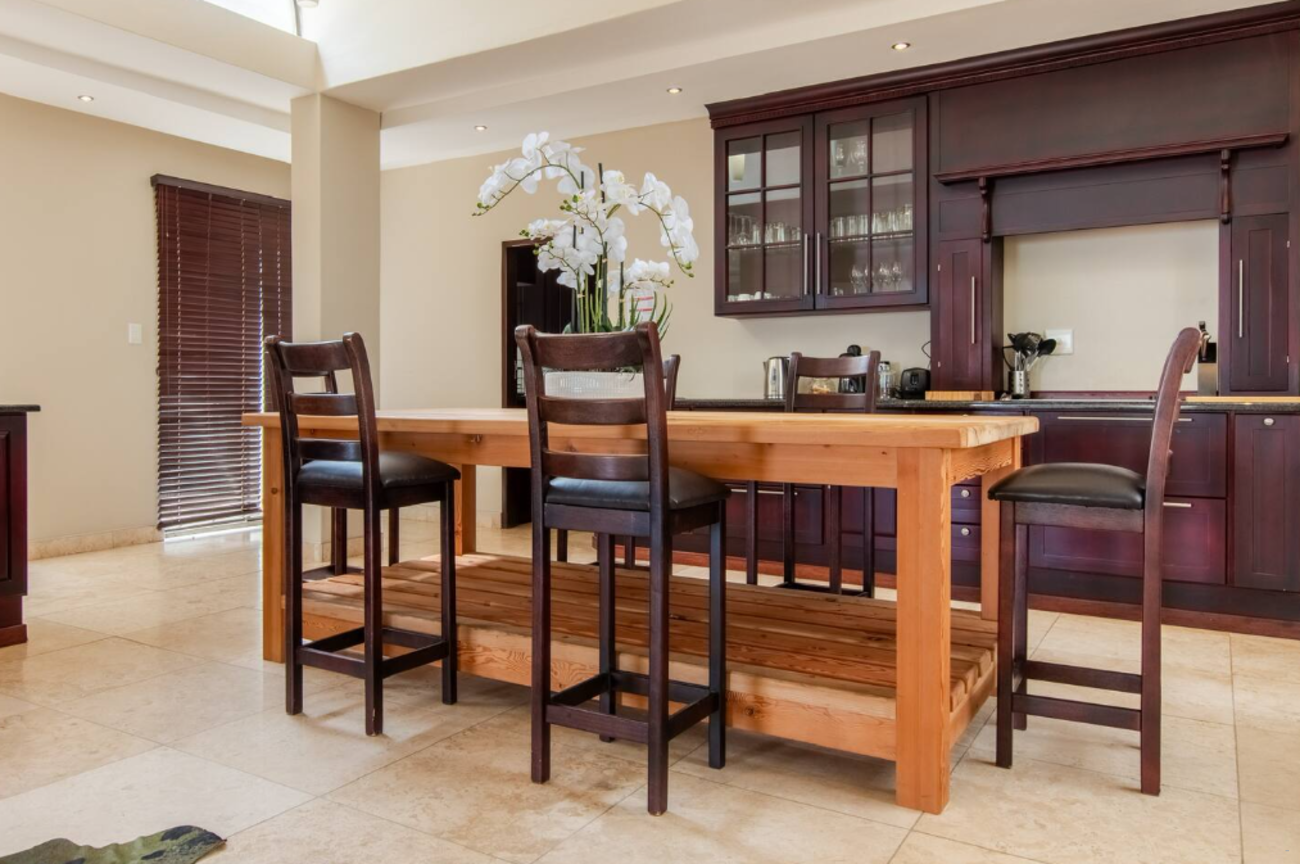 Die leefarea het 'n oopplan-ontwerp met 'n volledig toegeruste kombuis, insluitend 'n stoof, oond, mikrogolfoond, yskas-vrieskas, eetgerei en breekware. Vir ekstra gerief is 'n skottelgoedwasser en wasmasjien ook beskikbaar. 'n Eetkamertafel met 6 sitplekke langs die kombuis is perfek om maaltye te geniet. Die sitarea is ingerig met gemaklike sitplek en 'n slim-TV met toegang tot YouTube en Netflix, asook gratis WiFi. Vir binnenshuise vermaak kan gaste 'n pooltafel en mini-tafeltennis geniet.