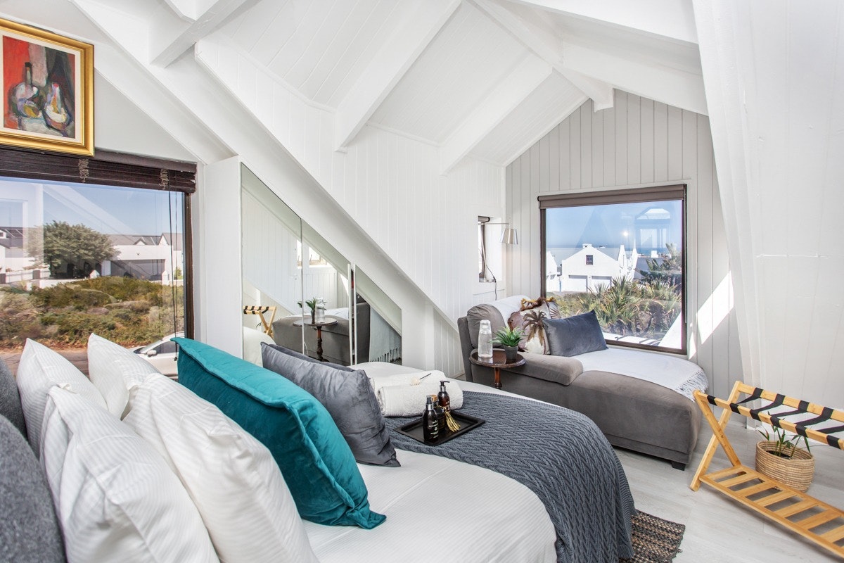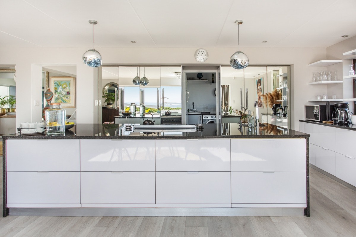 Die verhewe ontwerp van die huis versterk die gevoel van oopheid, wat panoramiese kusuitsigte moontlik maak wat tot by Yzerfontein strek. Hierdie strategiese posisionering maksimeer die natuurlike lig en briesie en verseker ook dat die binnenshuise braai-/braai-area naatloos aansluit by beide die beskutte binnehof en aangrensende groen gordel, wat ononderbroke uitsigte en 'n ware gevoel van rustigheid bied.