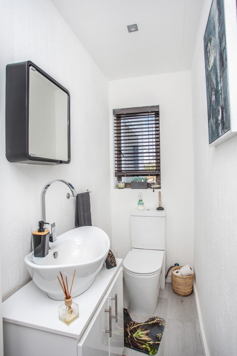 Die eerste en suite-slaapkamer is ook op die grondvloer geleë en geniet rustige uitsigte oor die voortuin en groen gordel.