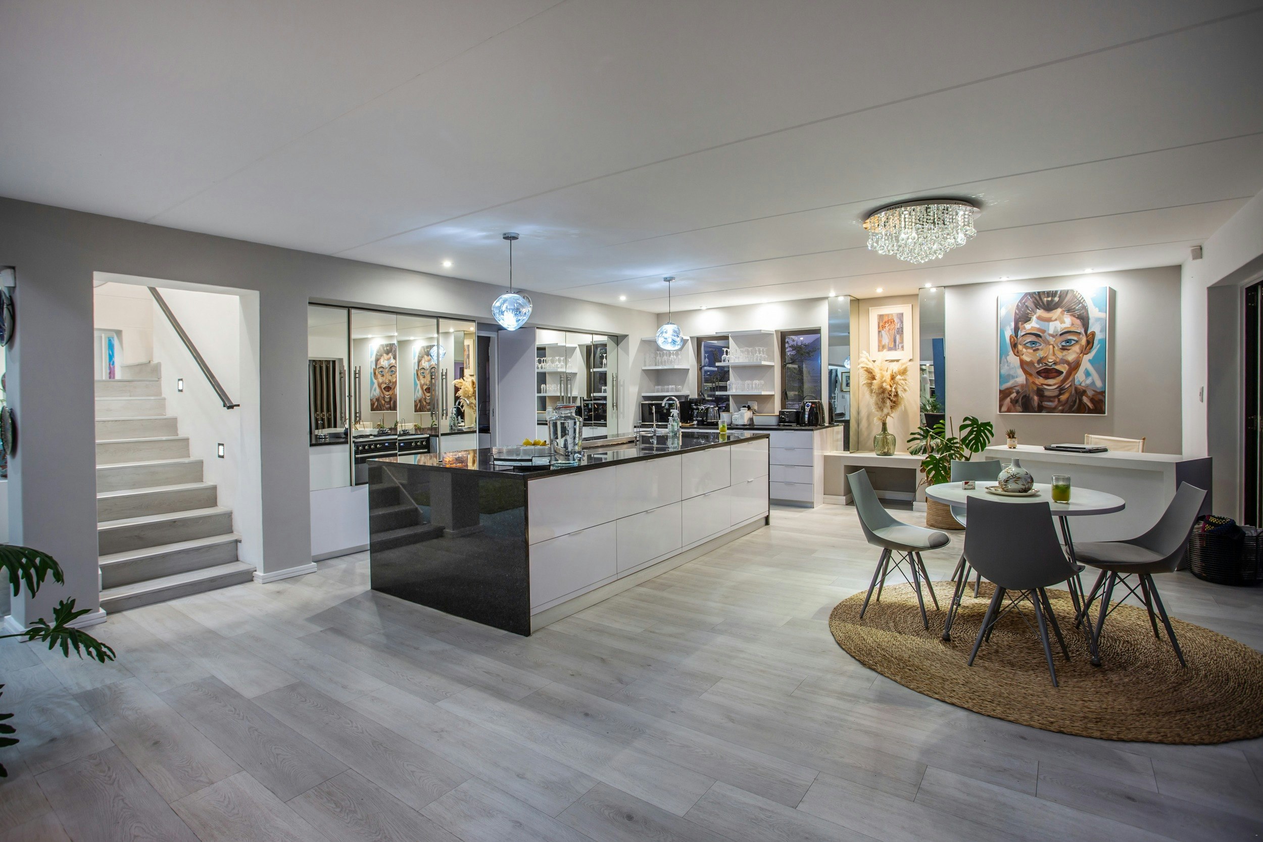 Alle vermaaklikheidsareas, insluitend die kombuis, eetkamer, binnehof en plonspoel, is gerieflik op die grondvloer geleë.