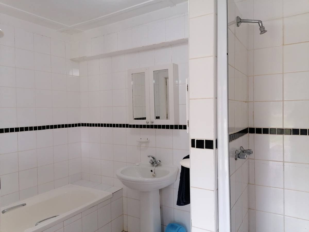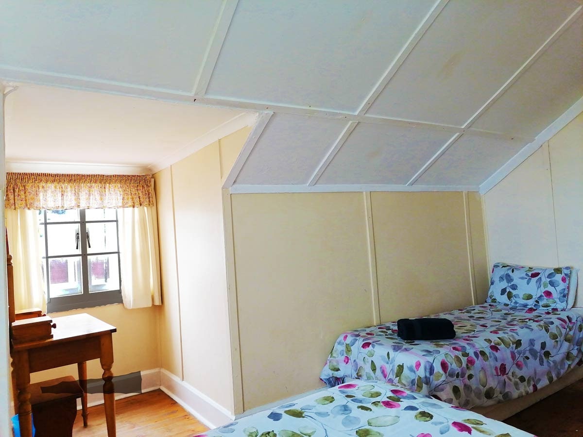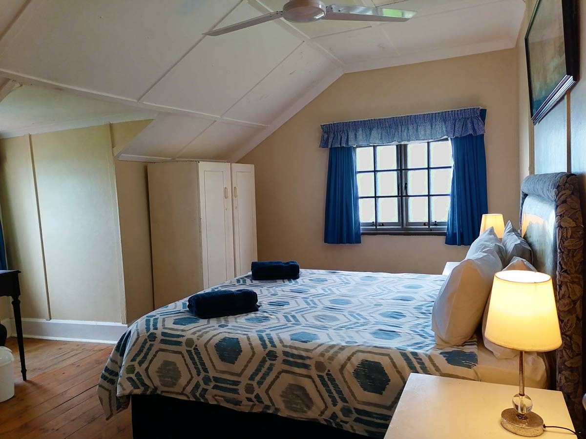 The spacious living area features a kitchen fully equipped with a stove, oven, microwave, fridge-freezer, dishwasher, cutlery and crockery as well as tea- and coffee-making facilities. Leading from this kitchen is a dining space where guests can enjoy their meals together. The lounge space has comfortable seating and a TV with Openview channels. Guests are welcome to bring their own DStv decoder and smart card.