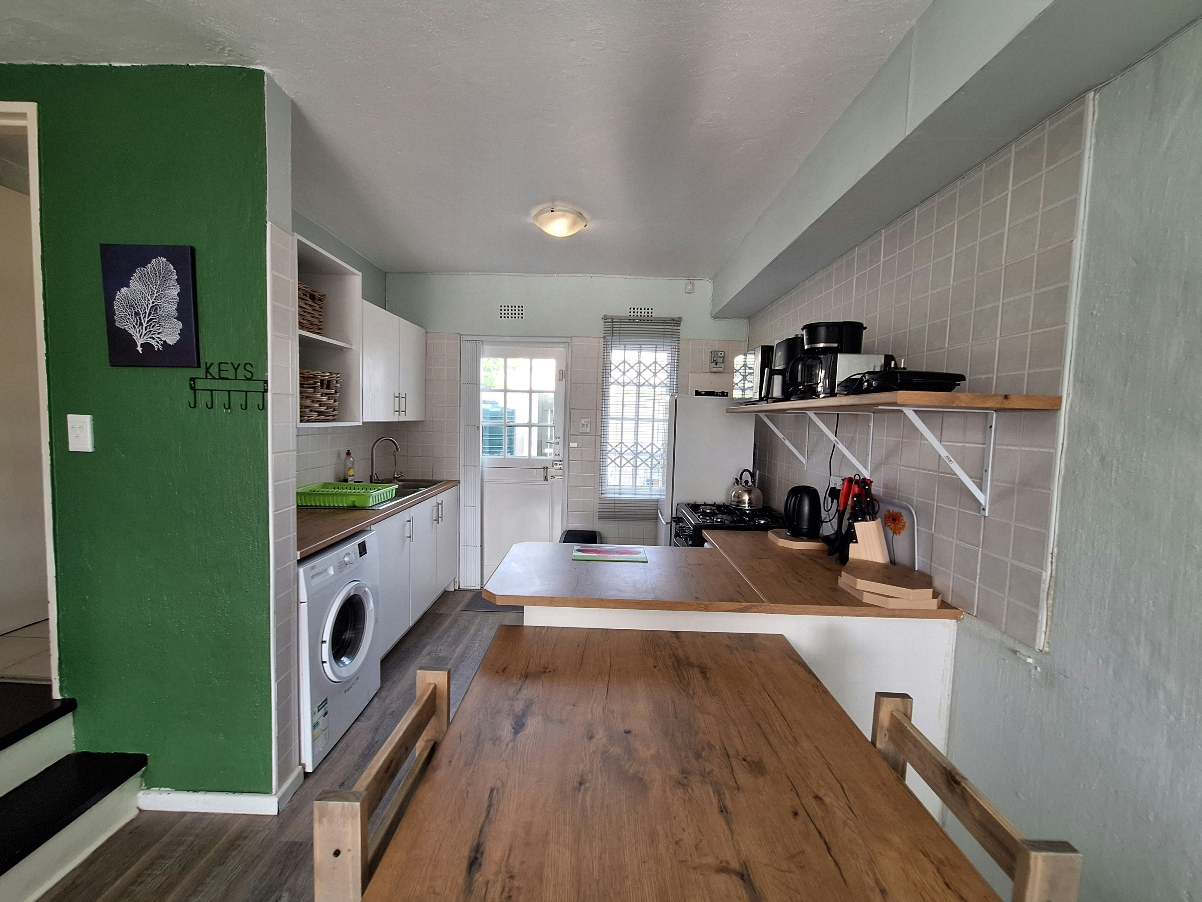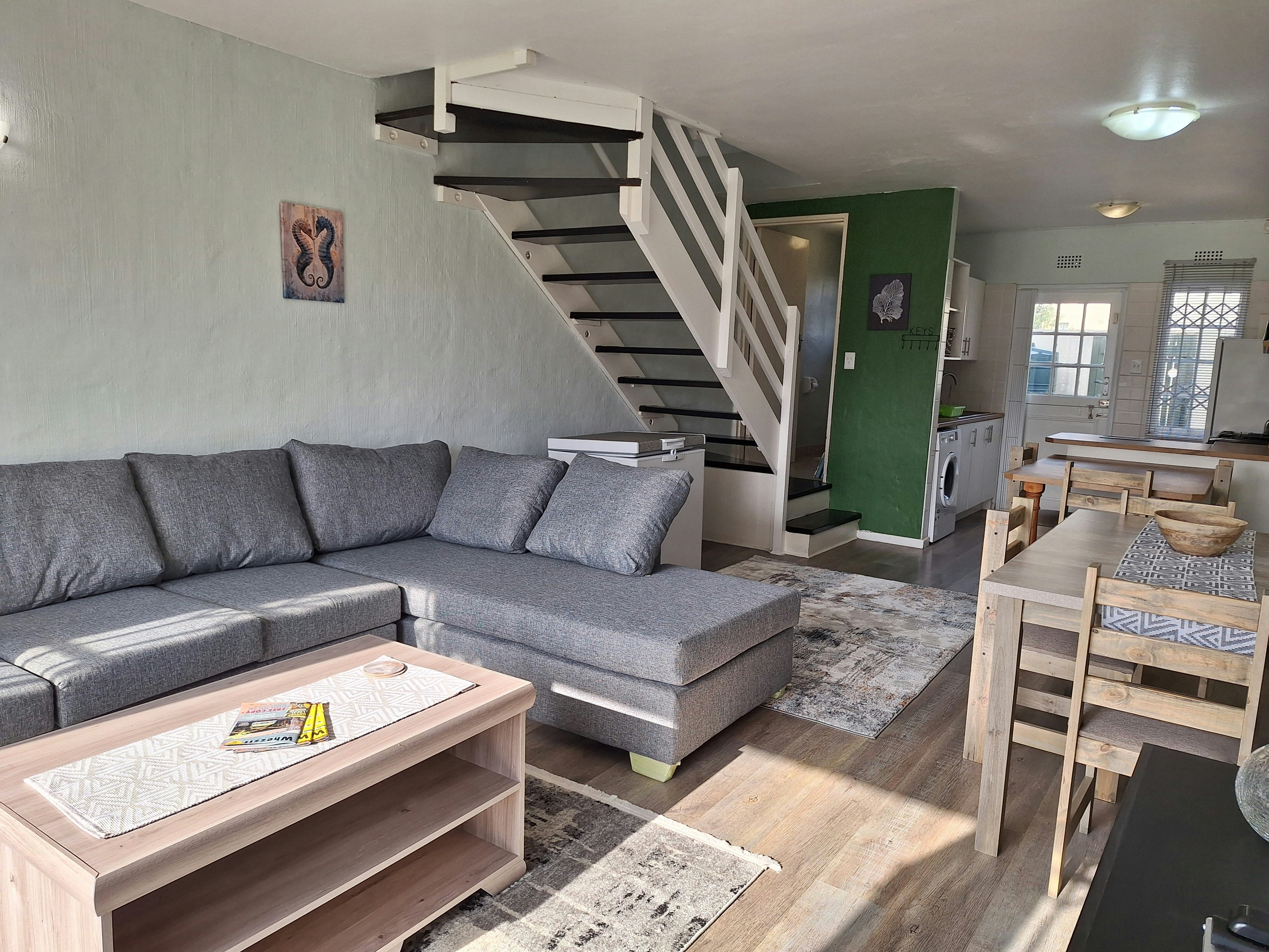 Die grondvloer beskik oor 'n oopplan-leef- en eetkamer wat lei na 'n privaat braai- en vermaaklikheidsarea. Die kombuis is volledig toegerus vir selfsorg en sluit 'n gasstoof, yskas-vrieskas, kisvrieskas, lugbraaier en wasmasjien in.