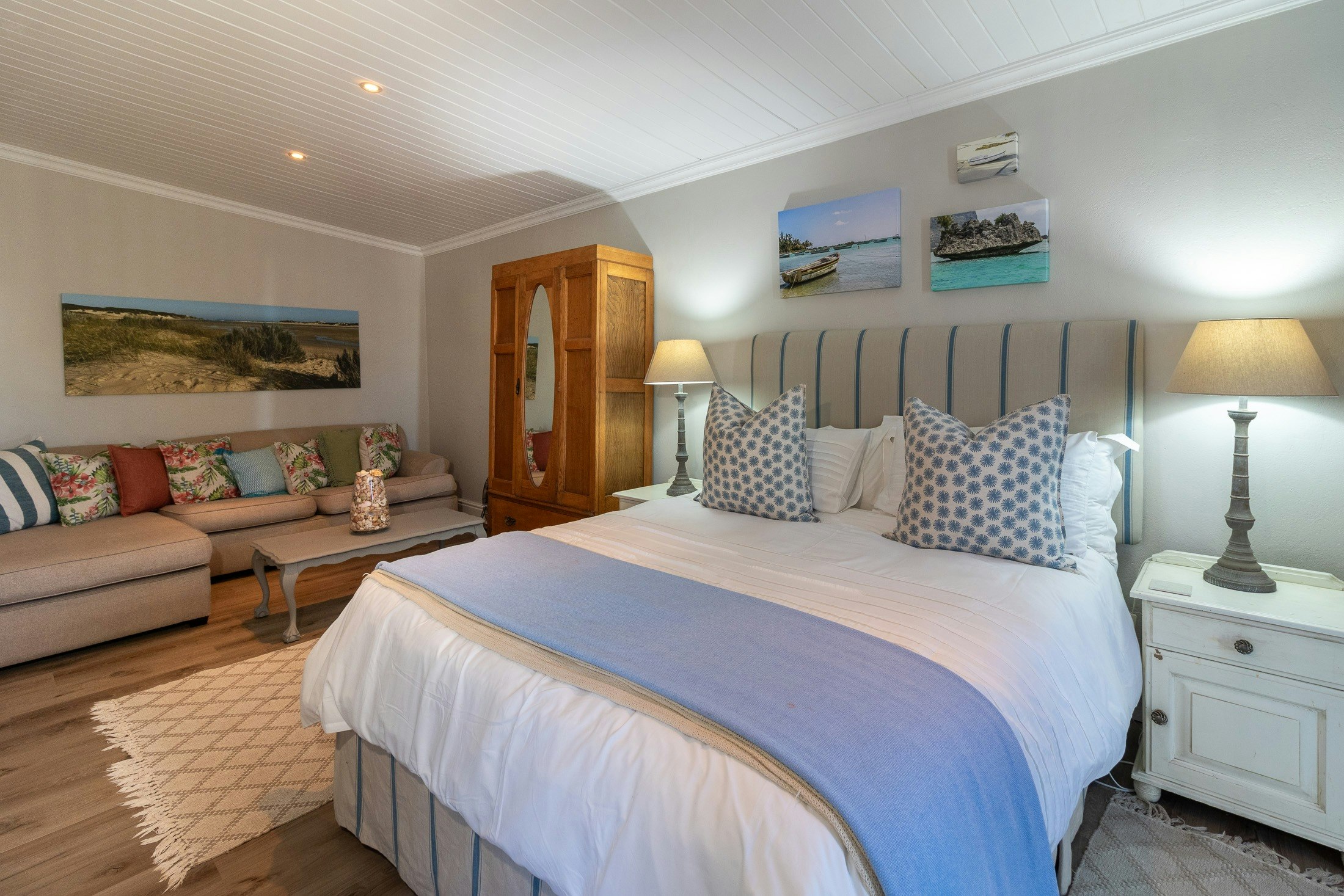 Nearby, guests can explore Shelley Beach, renowned as one of the world’s most beautiful coves, as well as Middle Beach and Kariega Beach, each offering a variety of beach experiences depending on weather conditions. Local activities range from scenic beach hikes, horse riding trails, and game drives to boat cruises on the Kariega or Bushmans rivers, golf, and even flights in a biplane for the adventurous. Whispering Sands is a great holiday destination for those seeking both relaxation and adventure in the serene coastal setting of Kenton-on-Sea.