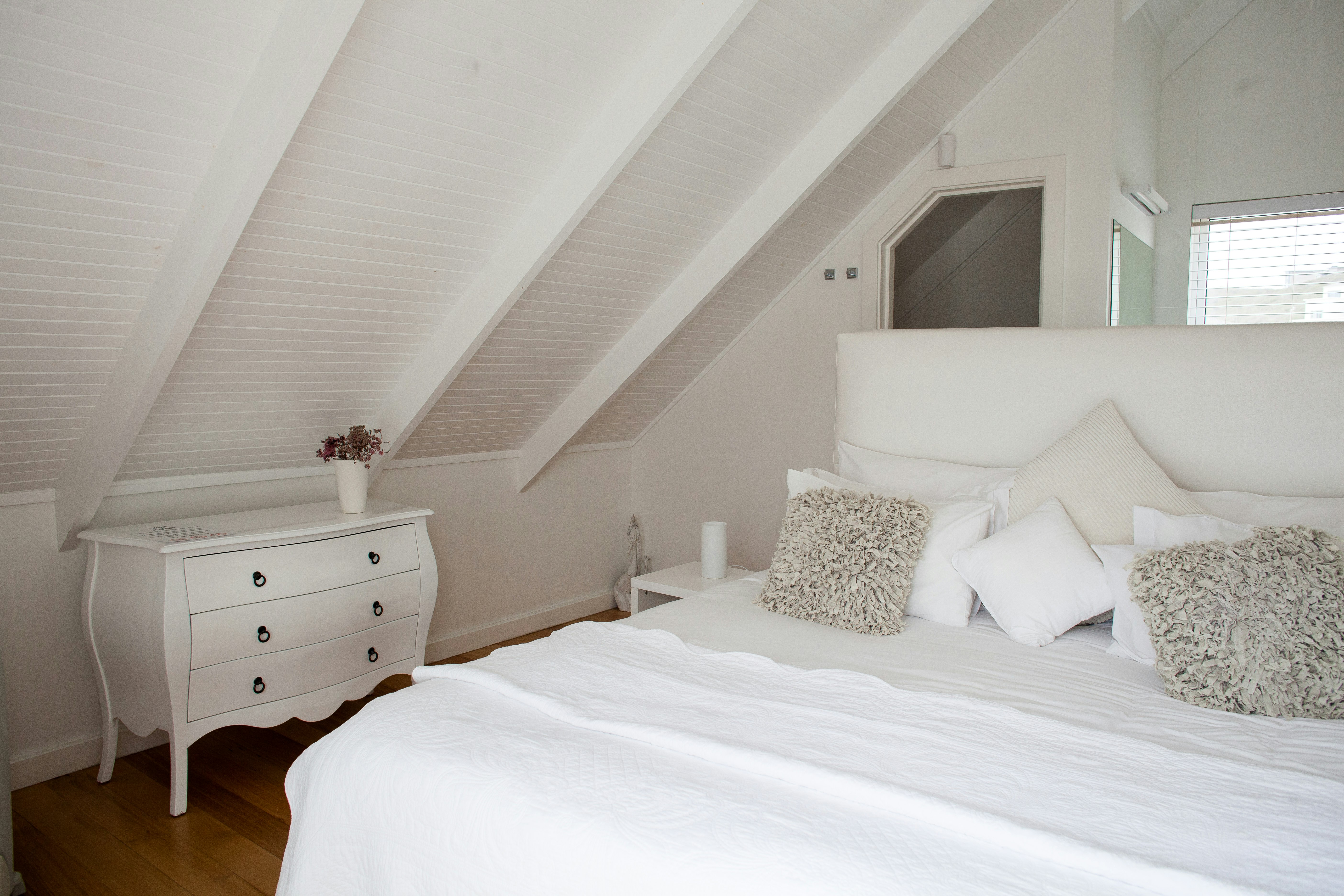 Die groot, luukse hoofslaapkamer is bo geleë en bied pragtige see-uitsigte en 'n privaat sitkamer met 'n TV wat oopmaak na 'n dek met uitsig oor die see. Die kamer is gemeubileer met 'n koninggrootte bed en het 'n oopplan-badkamer met 'n bad, stort en 'n aparte toilet. Die tweede slaapkamer is ook bo geleë en het 'n aparte ingang met see-uitsigte. Die kamer is gemeubileer met 'n koninggrootte bed en het 'n privaat badkamer met 'n stort, bad en toilet.