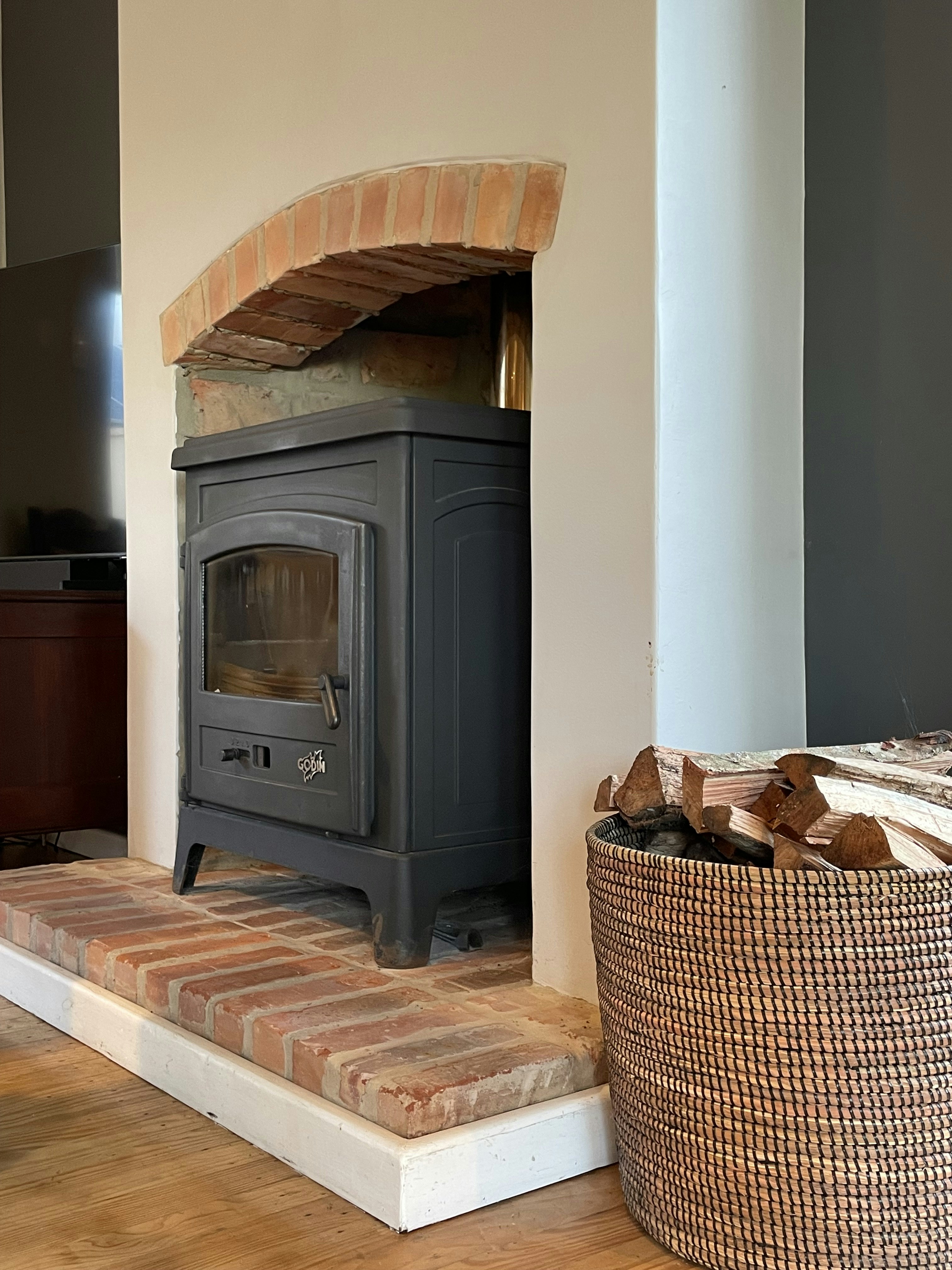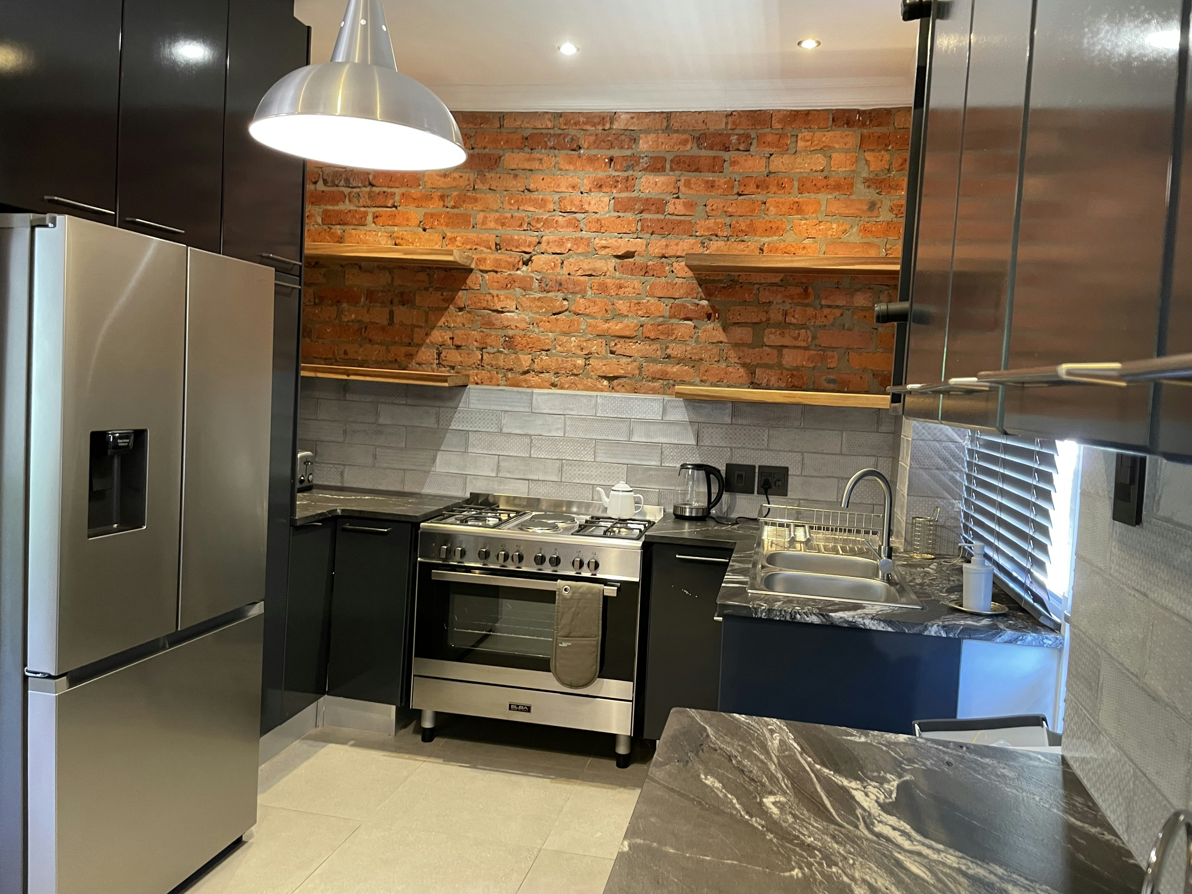 Die oopplan-leefarea het gemaklike sitplek waar gaste kan ontspan, 'n TV en 'n kaggel. Daar is ook 'n etenstafel en 'n kombuis met moderne geriewe, soos 'n dubbel-yskas-vrieskas, stoof, oond, mikrogolf en tee- en koffiemaakgeriewe. Gaste het ook toegang tot 'n onderdakstoep met sitplek en 'n ingeboude braai, wat uitsigte oor die tuin en omliggende landskappe bied. Veilige parkeerplek is beskikbaar.