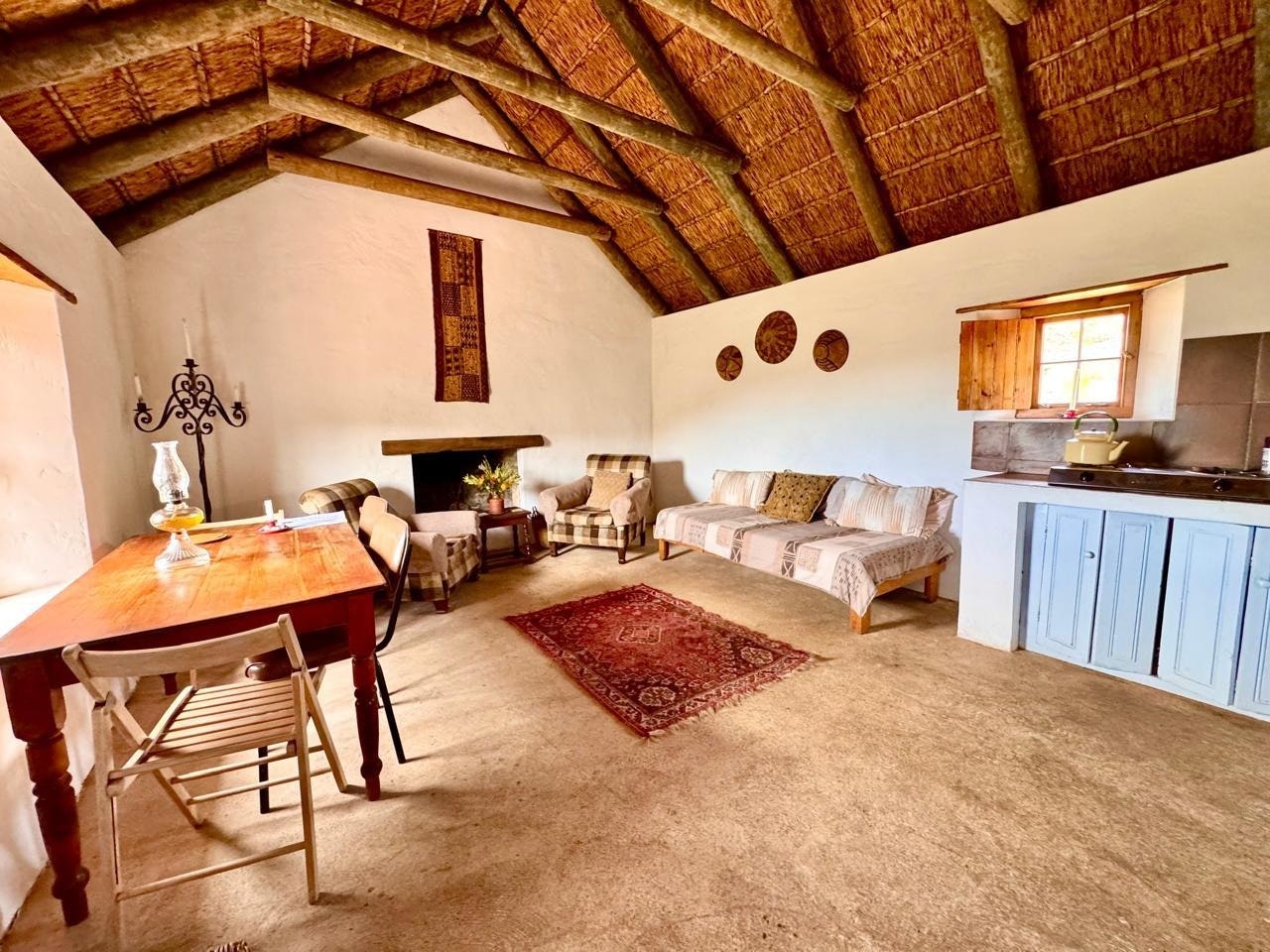 Die kothuise het nie elektrisiteit nie, maar gas word voorsien vir warm water, 'n kookplaat en 'n gemeenskaplike yskas-vrieskas by die hoofhuis. Kerse en olielampe word voorsien, en hout is te koop. Die kothuise is goed toegerus, insluitend linne en handdoeke. Die kothuise het albei 'n binne-kaggel in die leefarea en buitebraai.
