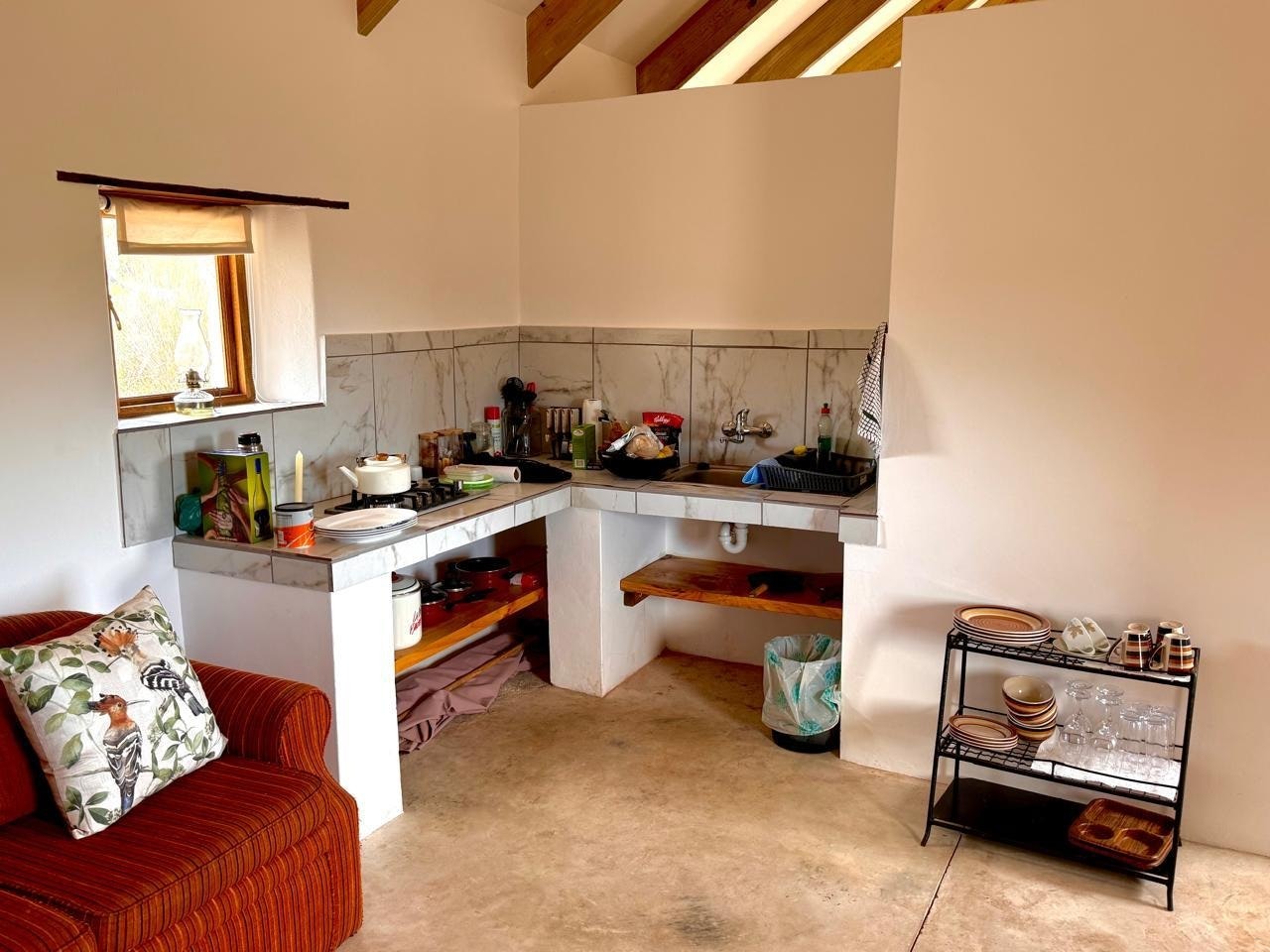 Die stoep en suite-dubbelkamer is naby die hoofhuis geleë en is baie gerieflik en het wel elektrisiteit. Gaste kan van die hoofhuis se kombuis en braai gebruik maak.