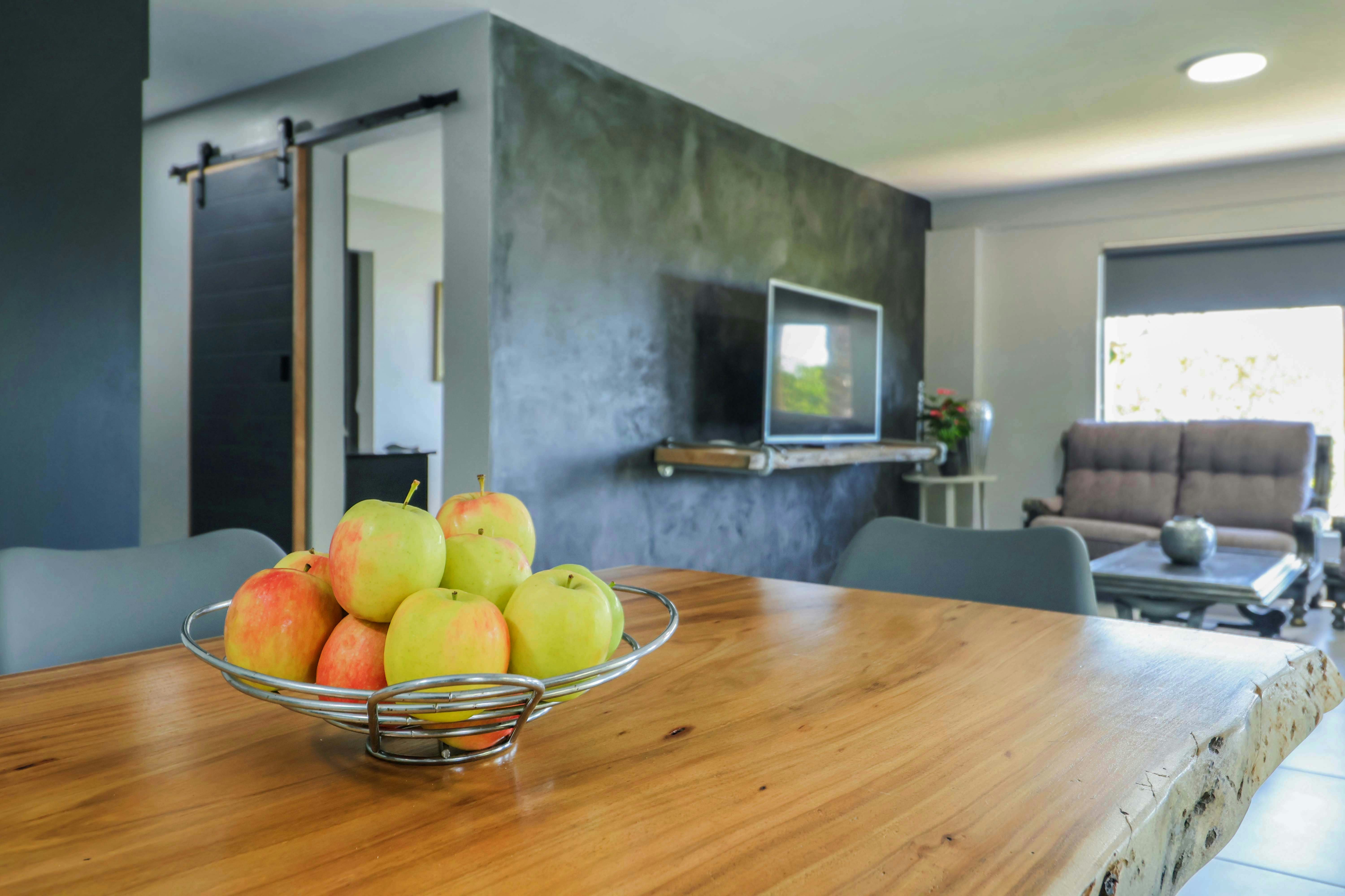 Die oopplan-leefarea in die hoofhuis beskik oor 'n stylvolle kombuis met 'n stoof, oond, mikrogolfoond, yskas-vrieskas, eetgerei en breekware, asook 'n skottelgoedwasser. Daar is ook 'n wasmasjien en tuimeldroër. Die kombuis lei na 'n etenstafel met oorgenoeg sitplek vir gaste om hul maaltye saam te geniet. Die woonstel het 'n koffiestasie.