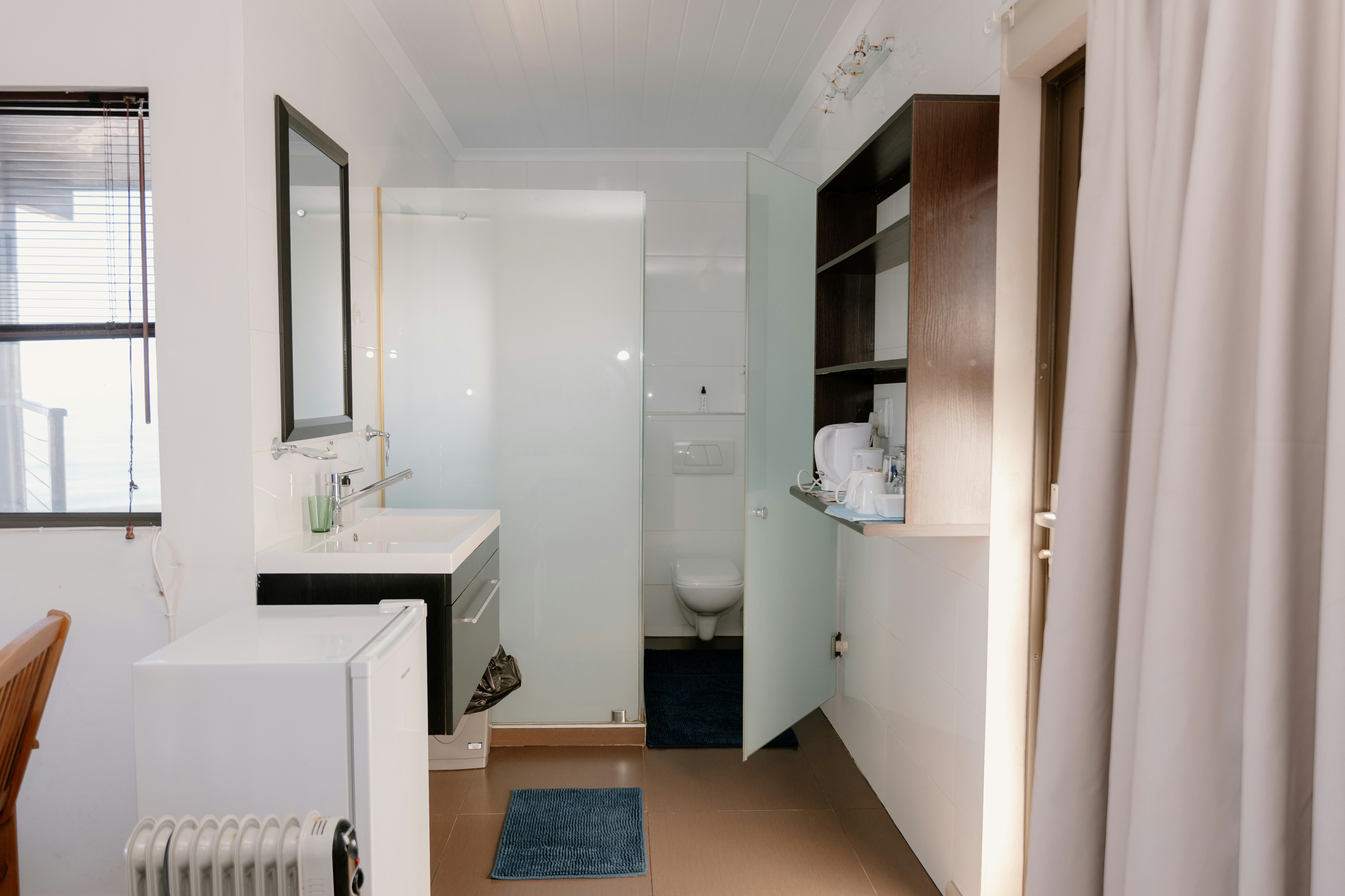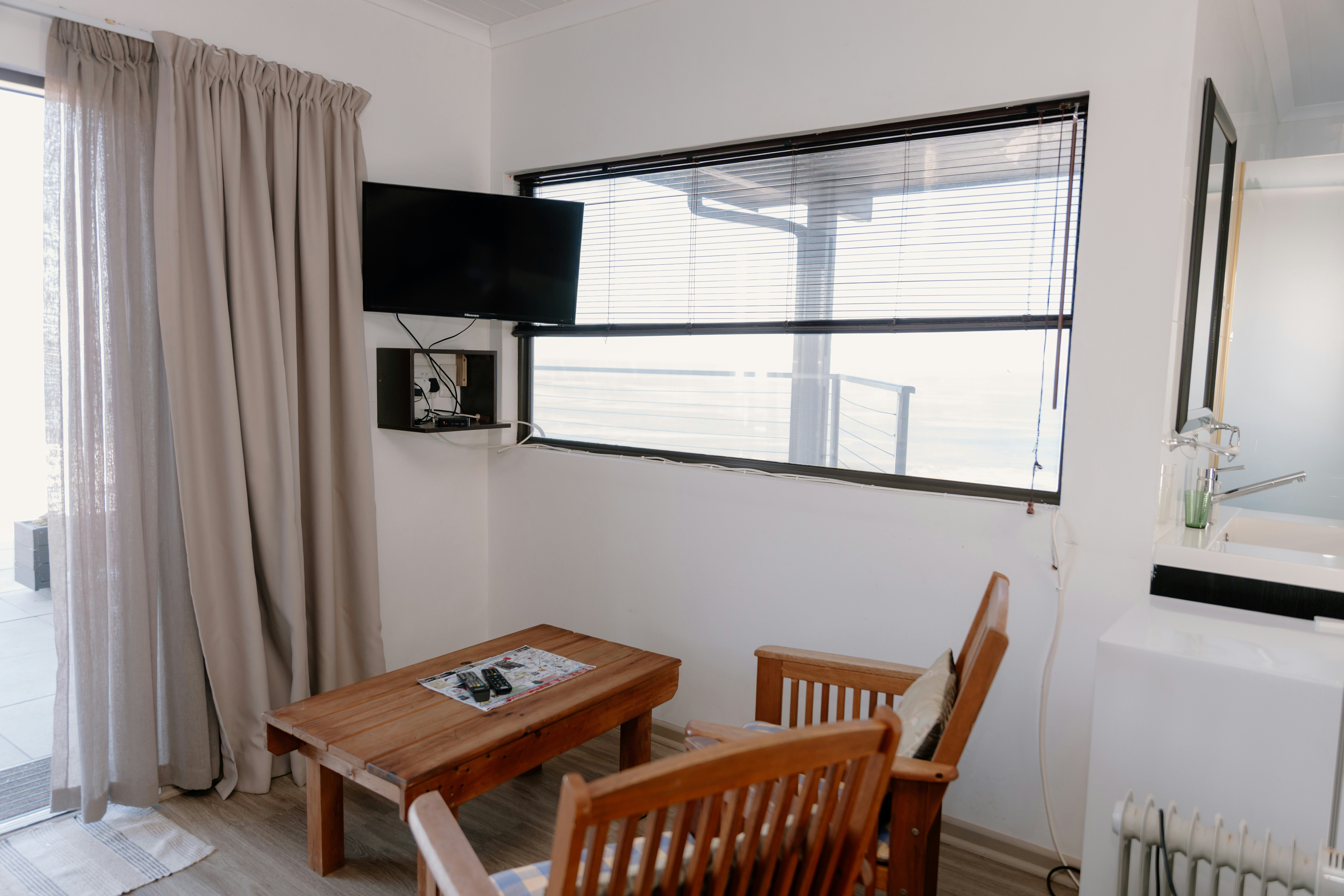 Quiet with a stunningly beautiful view. The sound of the waves makes you forget that there are any other guests around you. The view is truly beautiful. The room was clean and tidy and the breakfast was very tasty. Would definitely recommend.