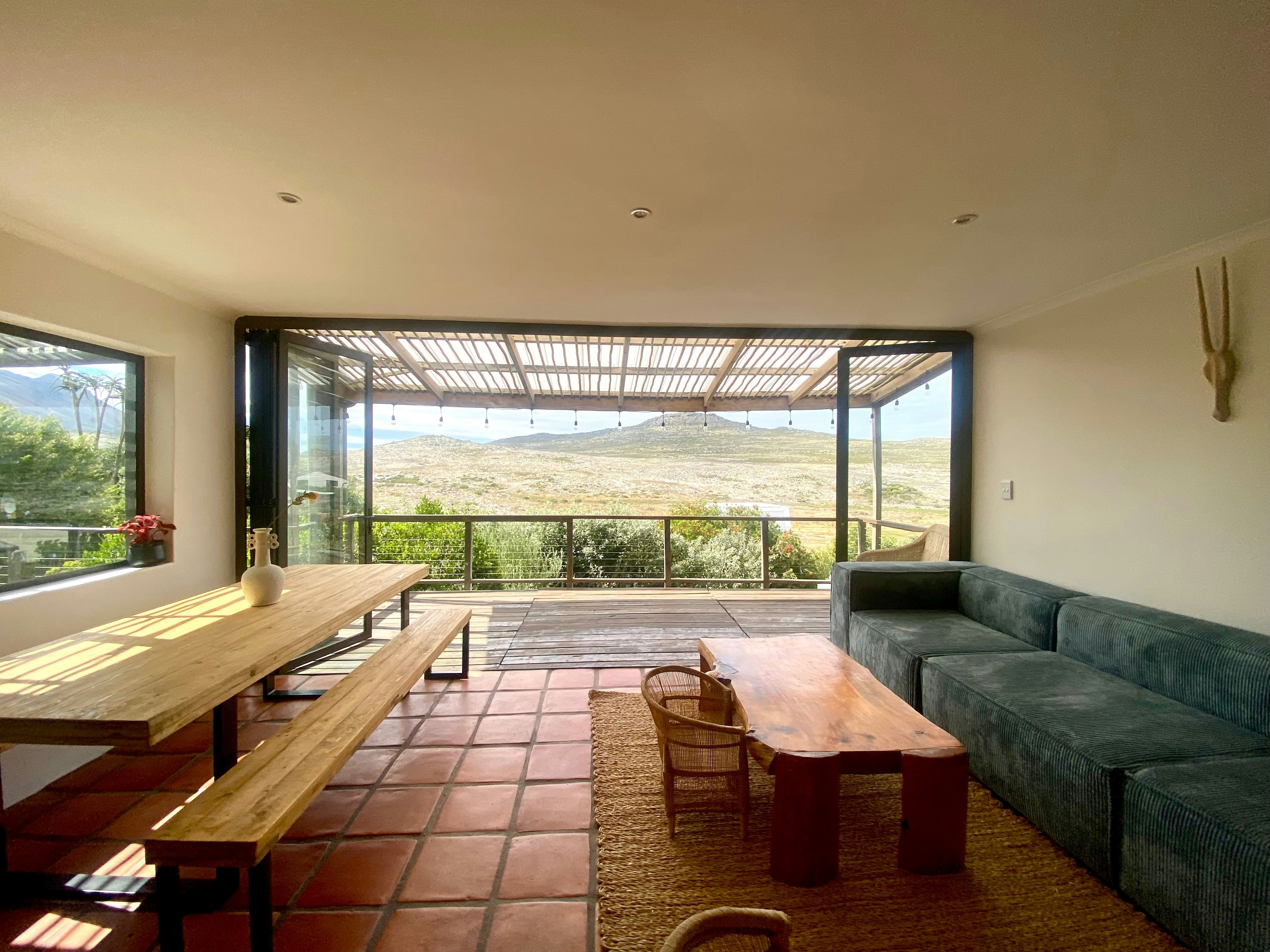 Die ruim deure maak oop na 'n lieflike houtdek met buitesitplek en braaigeriewe, met asemrowende uitsigte oor die natuur. Hierdie huis is ontwerp met privaatheid en ontspanning in gedagte, wat gaste die seldsame geleentheid bied om die natuurlike skoonheid van die Kaappunt-gebied in 'n rustige en eksklusiewe omgewing te ervaar. Of jy nou 'n oggendkoffie geniet of die sonsondergang kyk, die uitsigte en wildlewe-waarnemings maak elke oomblik onvergeetlik.