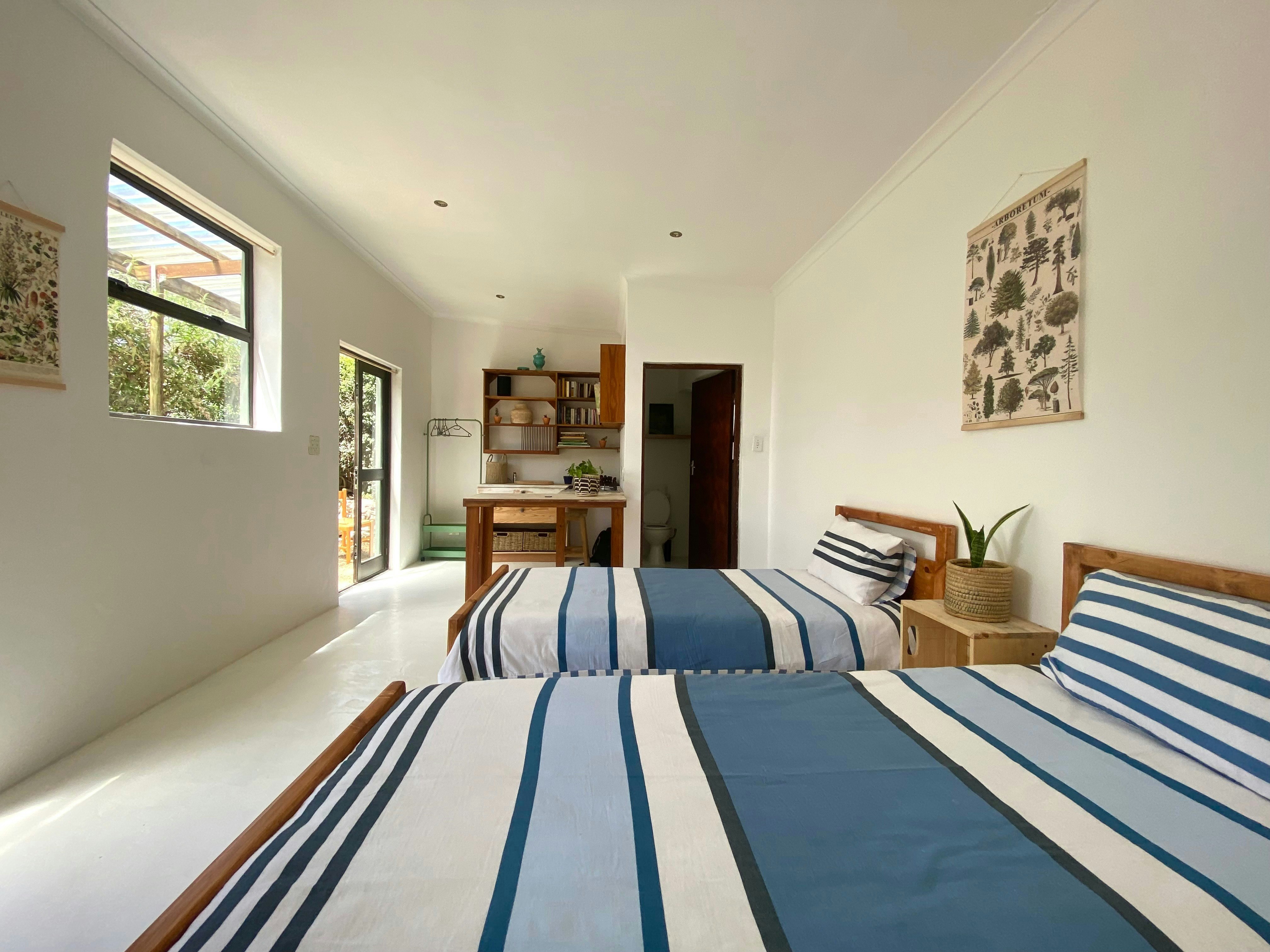 Geleë in 'n rustige straat, is die huis vol sjarme en karakter. Dit bied slaapplek vir 8 gaste en bestaan uit 4 gemaklike slaapkamers en 3 badkamers, wat dit ideaal maak vir gesinne of groepe wat 'n rustige wegbreek soek, omring deur die natuur. Die hoofslaapkamer bo is ingerig met 'n koninggrootte bed, 'n en suite-badkamer met 'n stort, en spog met 'n uitgestrekte uitsig oor die Kaappunt Natuurreservaat en die oseaan. Die tweede slaapkamer onder is ook ingerig met 'n koninggrootte bed, terwyl die derde en vierde slaapkamers onderskeidelik 'n koningingrootte bed en 2 enkelbeddens het. Die vierde slaapkamer het 'n en suite-badkamer met 'n stort, terwyl die ander badkamer gedeel word en 'n bad en stort het.
