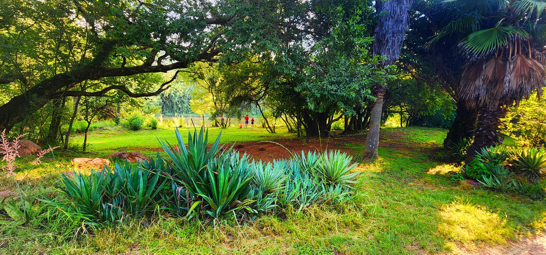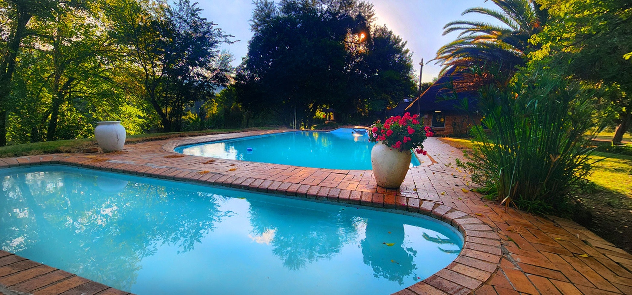 Daar is 'n swembad vir kinders en volwassenes, asook 'n gedeelde grasdaklapa en veilige parkeerplek.