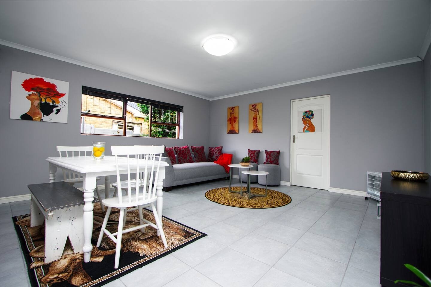 Guests can enjoy meals outside on the furnished patio, which includes a boma and a swimming pool. Secure parking is provided for the duration of the stay. For those looking to explore, Clara Anna Fontein Game Reserve is 1.5 km away, D'Aria Winery is 3.1 km away, and Durbanville Golf Club is 4.1 km away.