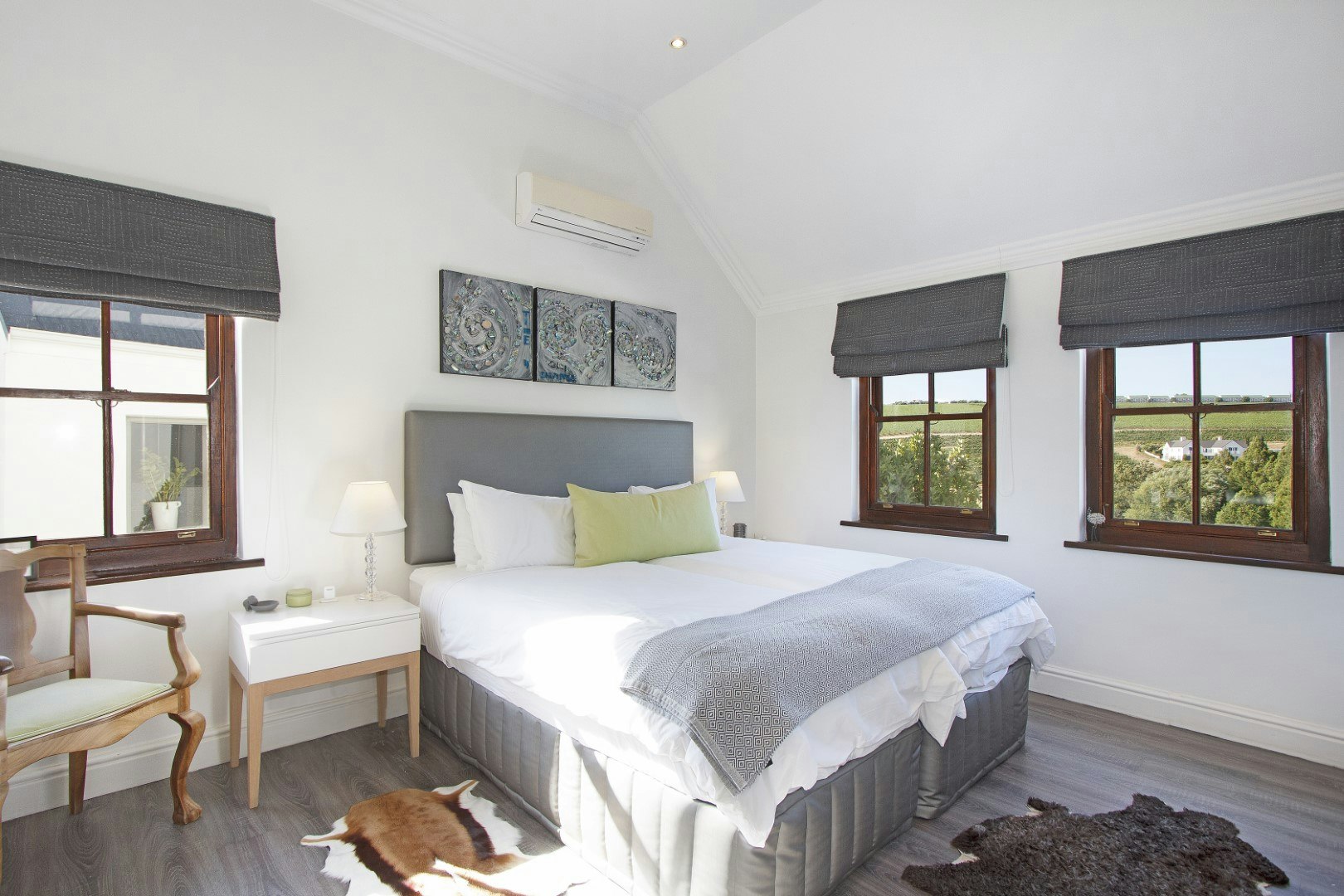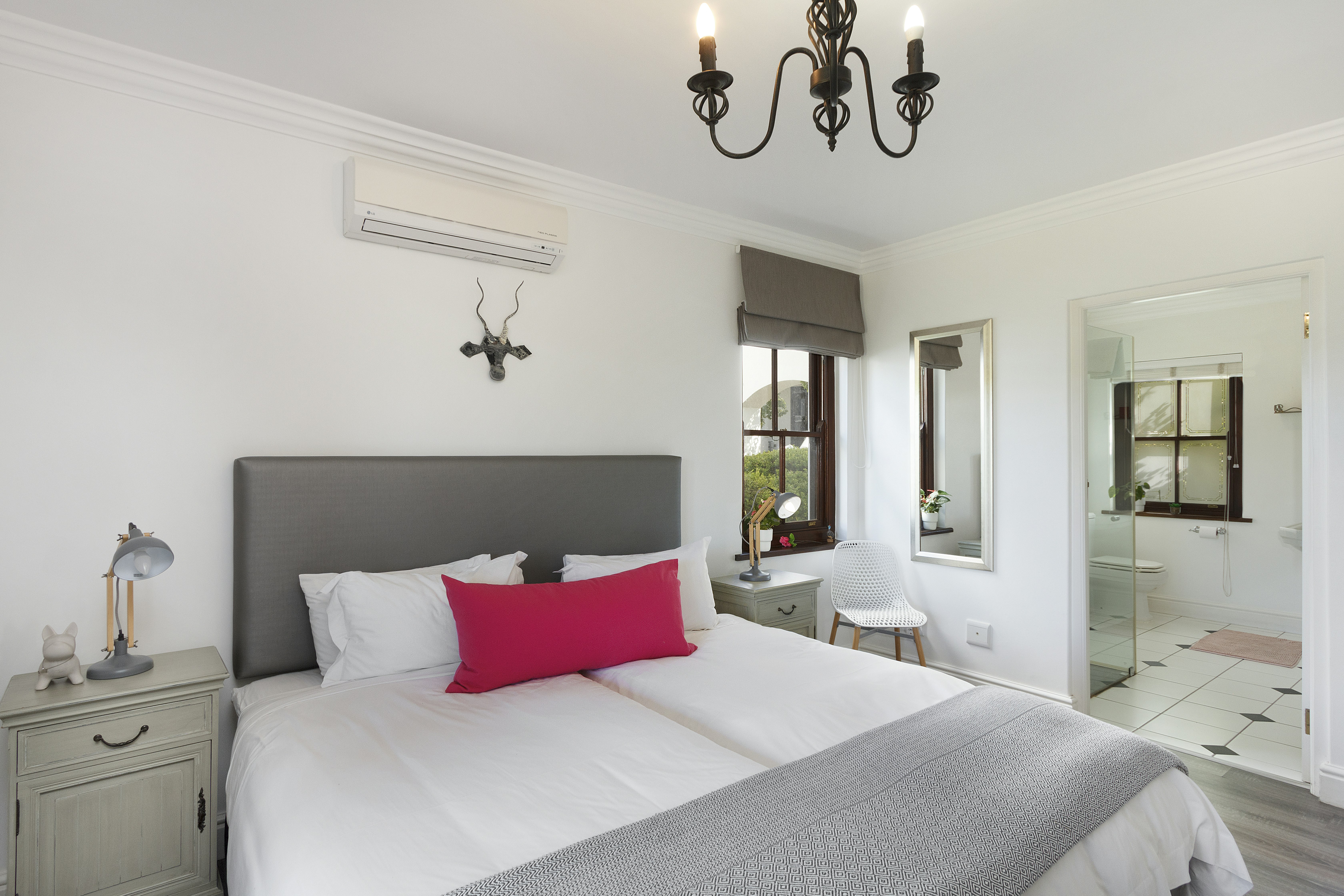 Hierdie dubbelverdieping-eenheid bied slaapplek aan 8 gaste en beskik oor 4 slaapkamers met lugversorging en en suite-badkamers. Al 4 slaapkamers het 2 enkelbeddens met skoon wit linne. Daar is 2 volledige gesinsbadkamers en die ander 2 het storte. Alle linne en badhanddoeke word voorsien, maar gaste moet asb. hul eie swemhanddoeke saambring.