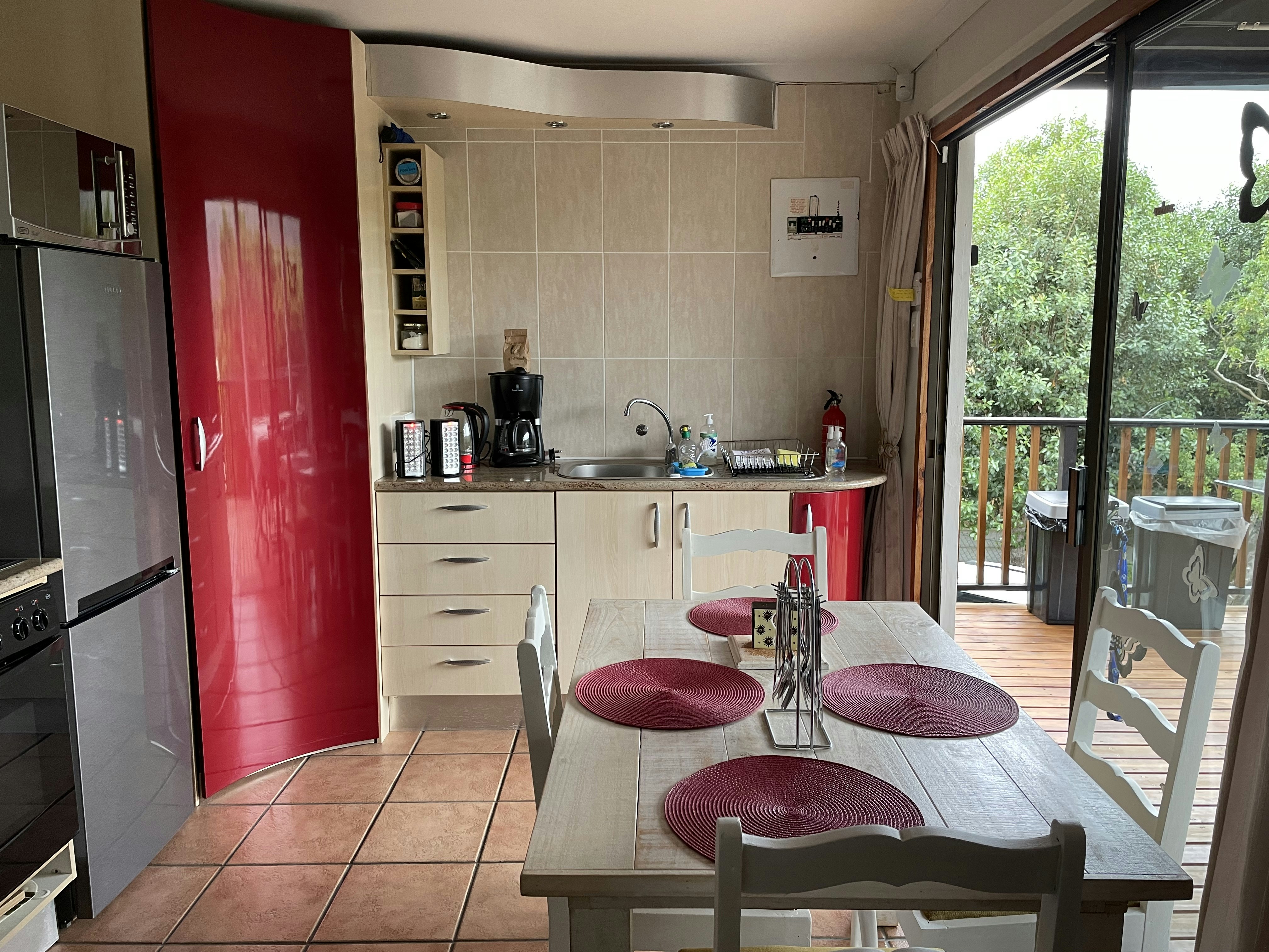 Die eenheid is op die eienaar se perseel, maar het sy eie ingang en alarm. Die woonstel beskik oor 2 slaapkamers. Een kamer het 'n ekstra lang koninggrootte-bed en die ander kamer het 'n koningingrootte-bed. Beide en suite-badkamers het ’n stort. Die oopplan-kombuis is toegerus met 'n yskas-vrieskas, stoof, glasoond, mikrogolfoond, ketel, broodrooster, koffiemasjien en kooktoebehore.