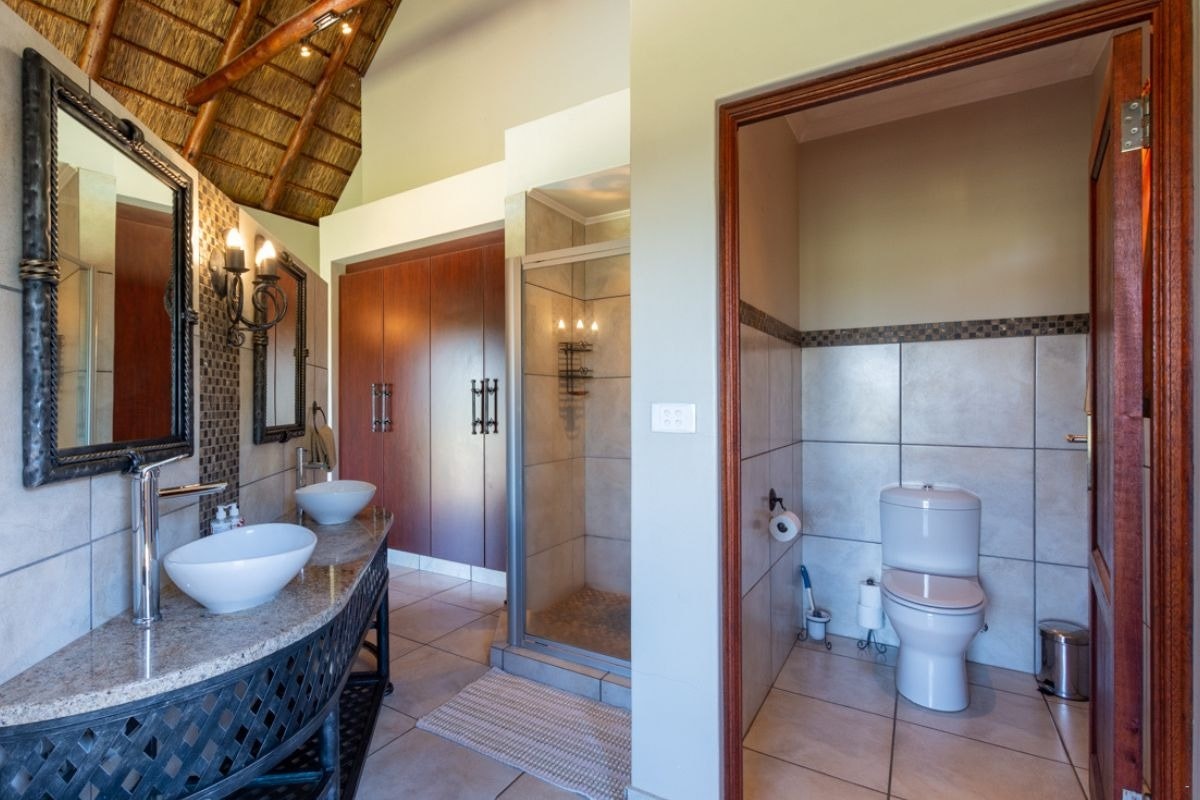 Hierdie ruim huis bestaan uit 4 slaapkamers en 'n woonstel. Die hoof-, tweede en derde slaapkamer het elk 'n koninggrootte-bed, en die vierde slaapkamer het 2 enkelbeddens. Die hoof- en tweede slaapkamer het elk 'n en suite-badkamer met 'n stort, bad en 'n buitestort. Die woonstel het 2 enkelbeddens, 2 rusbanke en 'n klein kombuisie. Ander geriewe sluit in lugversorging in al die slaapkamers, 'n pooltafel, TV met DStv en 'n oop vermaaklikheidsarea.