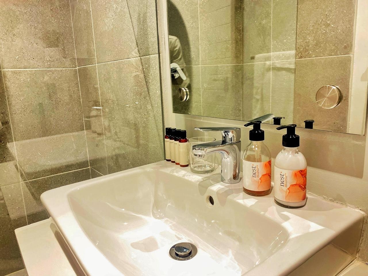 The apartment accommodates 2 guests. The bedroom is furnished with a queen-size bed and an en-suite bathroom fitted with a shower, toilet, and basin. There is a sleeper couch for a small child in the lounge. Bed linens and bath towels are provided.
