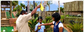 The Adventure Golf facility at the Stoneridge Centre is located in Greenstone Park, Gauteng. There are 3 courses, consisting of 9 holes each, as well as an entertainment area with a pizzeria, pool, and foosball tables. The terrain offers plenty of excitement for all ages with an exciting maze of putting greens, waterways, shaded log overhangs, rose gardens, and exotic plants. Each game can be played in groups of up to 4 players at a time and each game takes approximately half an hour.
