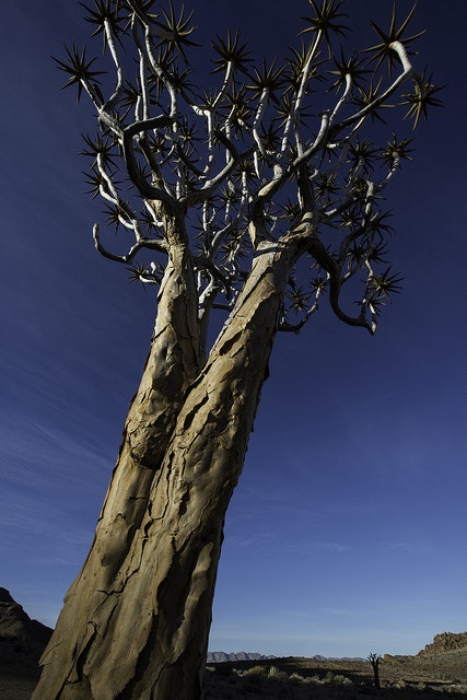 Although the park appears to be devoid of life, a closer inspection reveals a collection of the world’s richest desert flora, of which several species occur nowhere else in the world. Tiny succulents, tall aloes, and quirky ‘half-mens’ trees form miniature gardens that cling precariously to rock formations. These desert plants, along with a remarkable range of small reptiles, birds, and mammals, are sustained by the moisture of the early morning fog (called ‘Ihuries’ or ‘Malmokkies’ by the local people) that rolls in from the cold Atlantic Ocean.