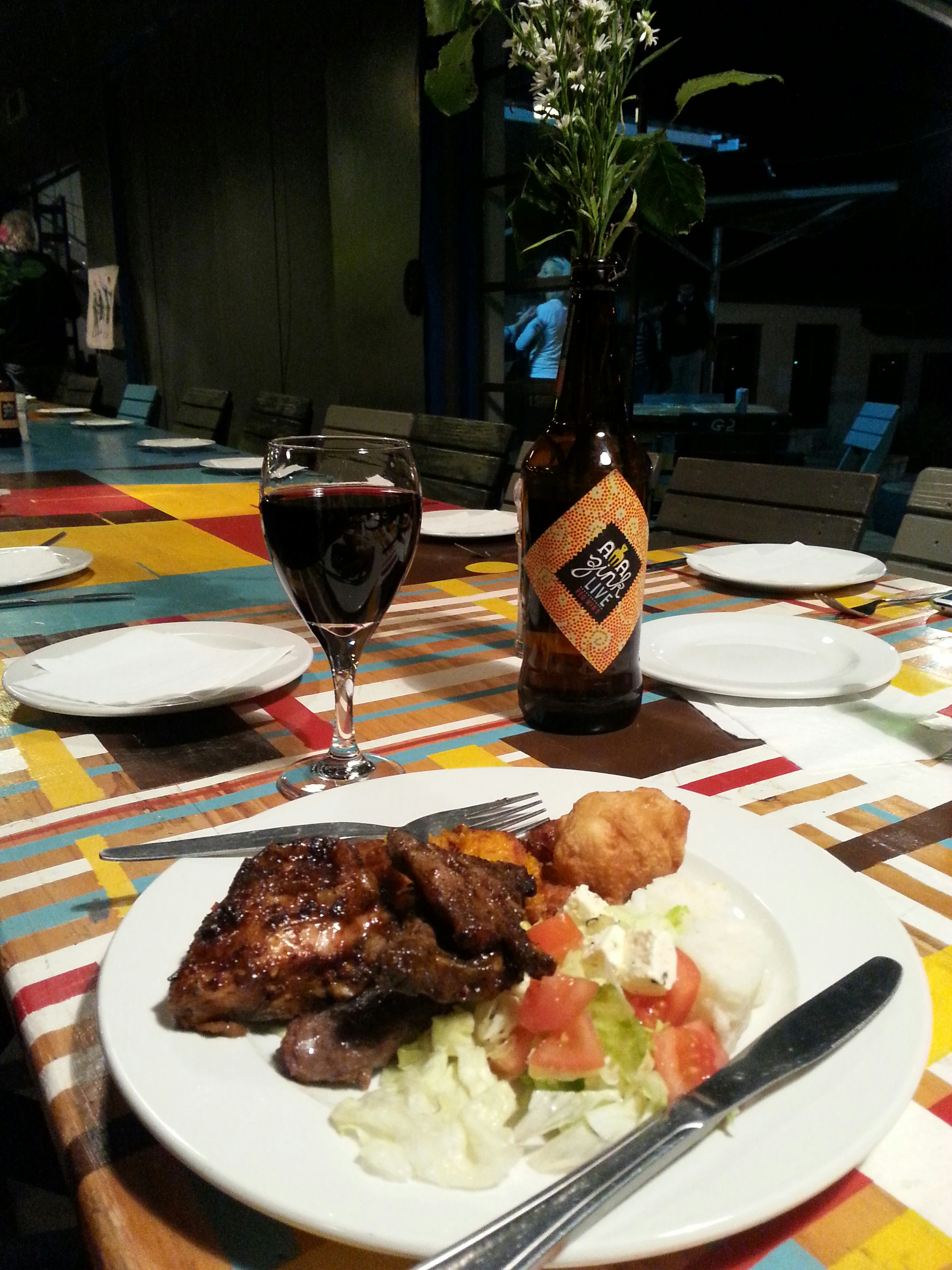 There is one rule for AmaZink Live: Come hungry. The buffet is available at R85 a person and includes a variety of traditional foods like boerewors, braaied chicken, and lamb chops served with a selection of salad, pumpkin fritters, pap, and deep fried bread.