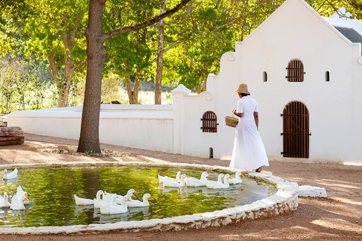 Babylonstoren is a beautiful farm stay with historic Cape Dutch buildings and modern touches. The lush gardens inspire everything on the farm — from what you can do and eat, to how they host weddings and special events.