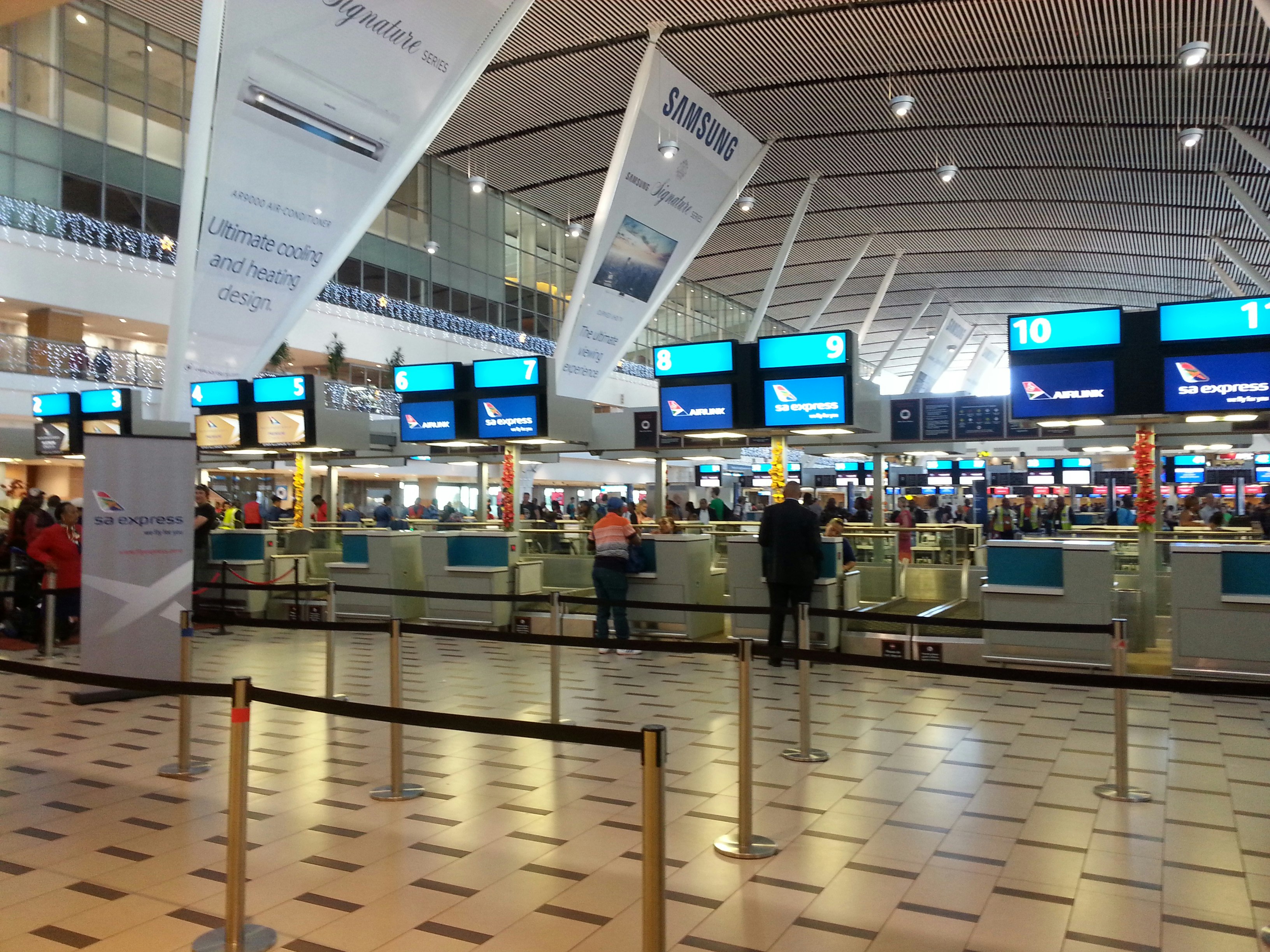 Cape Town International is the only airport in the Cape Town metropolitan area that offers scheduled passenger flights. The airport offers direct flights to South Africa’s other two main cities, Johannesburg and Durban, as well as smaller centres within the country. International flights serve several destinations in Africa, Asia, and Europe. The airport underwent renovations in preparation for the 2010 FIFA World Cup and was extensively expanded and renovated. The main focus for the renovation was to build a central terminal building to link the formerly separate domestic and international terminals, as well as to provide a common check-in area. Today, the airport has a split level design, with departures situated on the upper floor and arrivals on the lower floor. All check-ins take place in the central terminal building, regardless of destination, with over 120 check-in desks and 20 self-service kiosks.