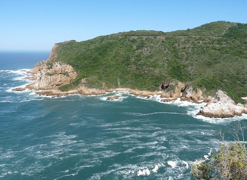 The Knysna Heads are a pair of sandstone cliffs that separate the Knysna Lagoon from the sea beyond; a famous landmark along the renowned Garden Route. The eastern head is easily accessible by car and has many spectacular viewpoints overlooking the channel, Indian Ocean, the Knysna Lagoon and estuary, and the Outeniqua Mountains. In fact, it was because of its excellent lookout that the National Sea Rescue Institute (Station 12, Knysna) chose to build its observation room here.