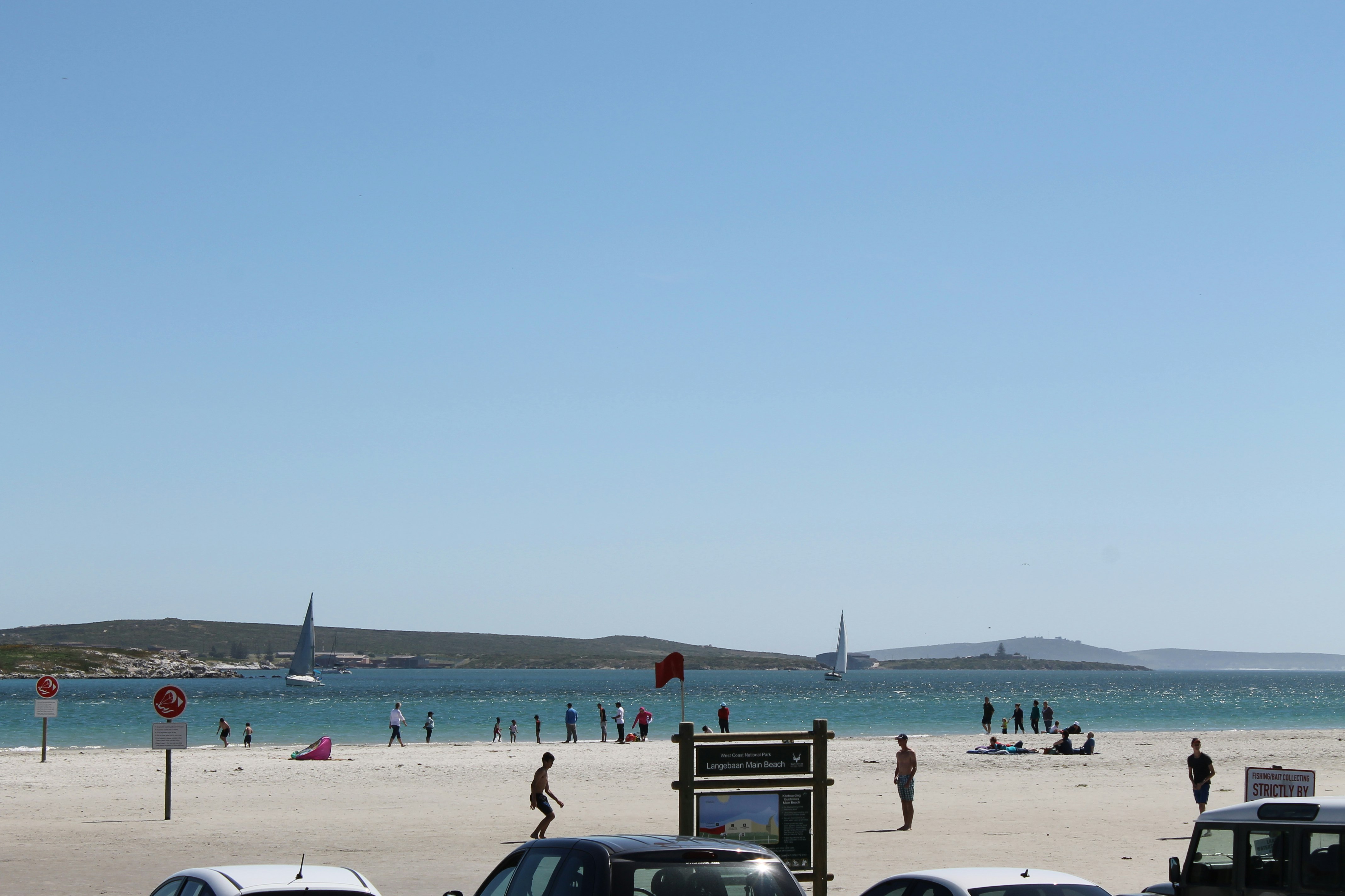 Langebaan Main Beach is a long, wide lagoon beach in the sleepy holiday town of Langebaan, on the West Coast . With a fantastic boat launching site for numerous lagoon based watersports, the beach is where all of the activity happens.