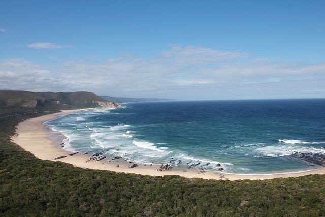 Natures Valley Beach is a secluded Blue Flag beach located near Plettenberg Bay, along the Garden Route in the Western Cape. The beach is well known as the end of the famous multi-day Otter Tail, and stretches from the mouth of the Groot River to the mouth of the Salt River. With giant indigenous trees, clear rivers, placid lagoons, and isolated sands, it’s no surprise this beach has been declared one of the most beautiful in the country.