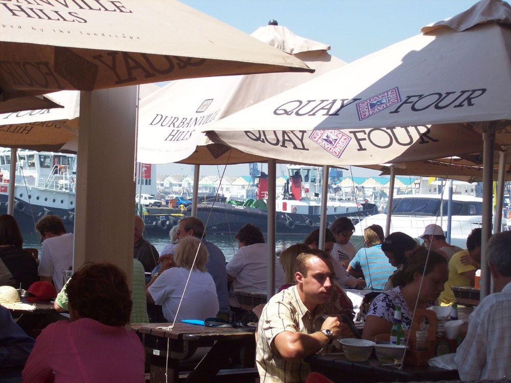 The terrace is most popular for people enjoying wine, draught beer, or cocktails in the sunshine. For those who want to eat, the menu offers light meals, salads, pub fare, and fish and chips. The Quay Four Upstairs Restaurant has an emphasis on fresh seafood where you can indulge in fresh Cape lobster or line fish of the day. Quay Four has different live bands playing each night of the week.