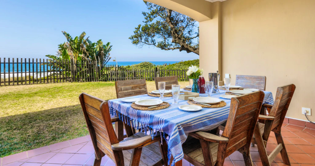 The lounge leads to a balcony with a braai and sea views. When you aren’t on the beach, guests can also make use of the communal swimming pool and visit the nearby beaches.